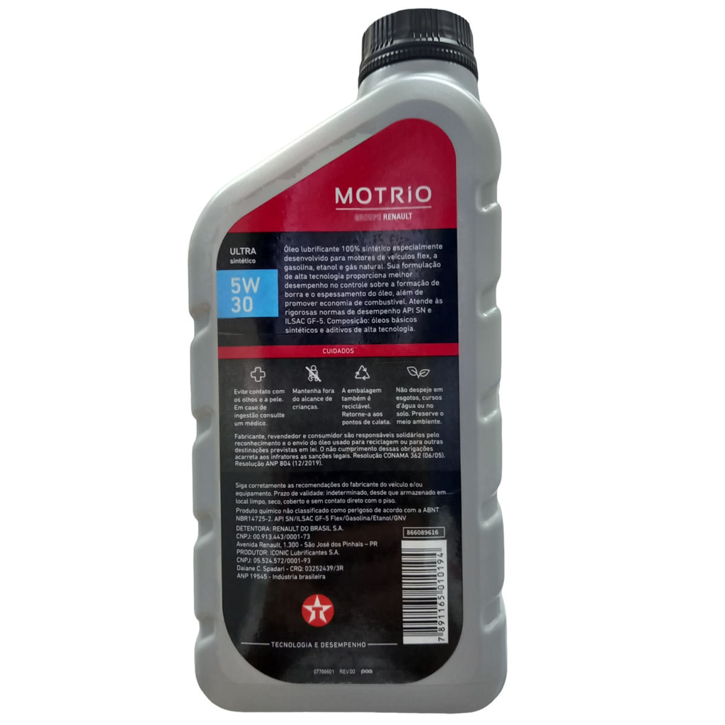 Óleo Lubrificante do Motor SN 5W30 Sintético Motrio 1L