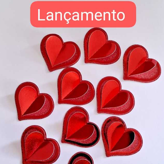 Aplique coração brilho para lembrancinhas coração 3d 10un mães namorados