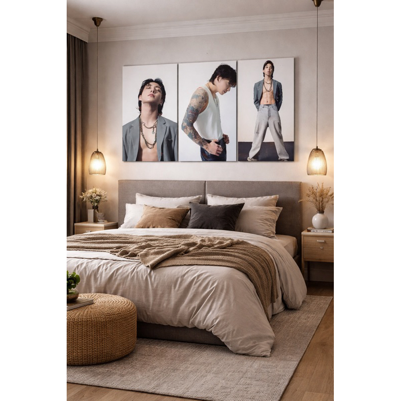 Kit 3 Quadros Decorativos Jeon Jungkook Grupo BTS K-POP quadros coreanos famosos QUADROS MODERNOS