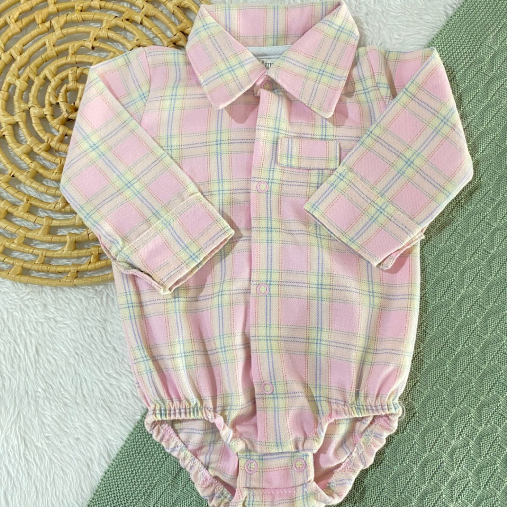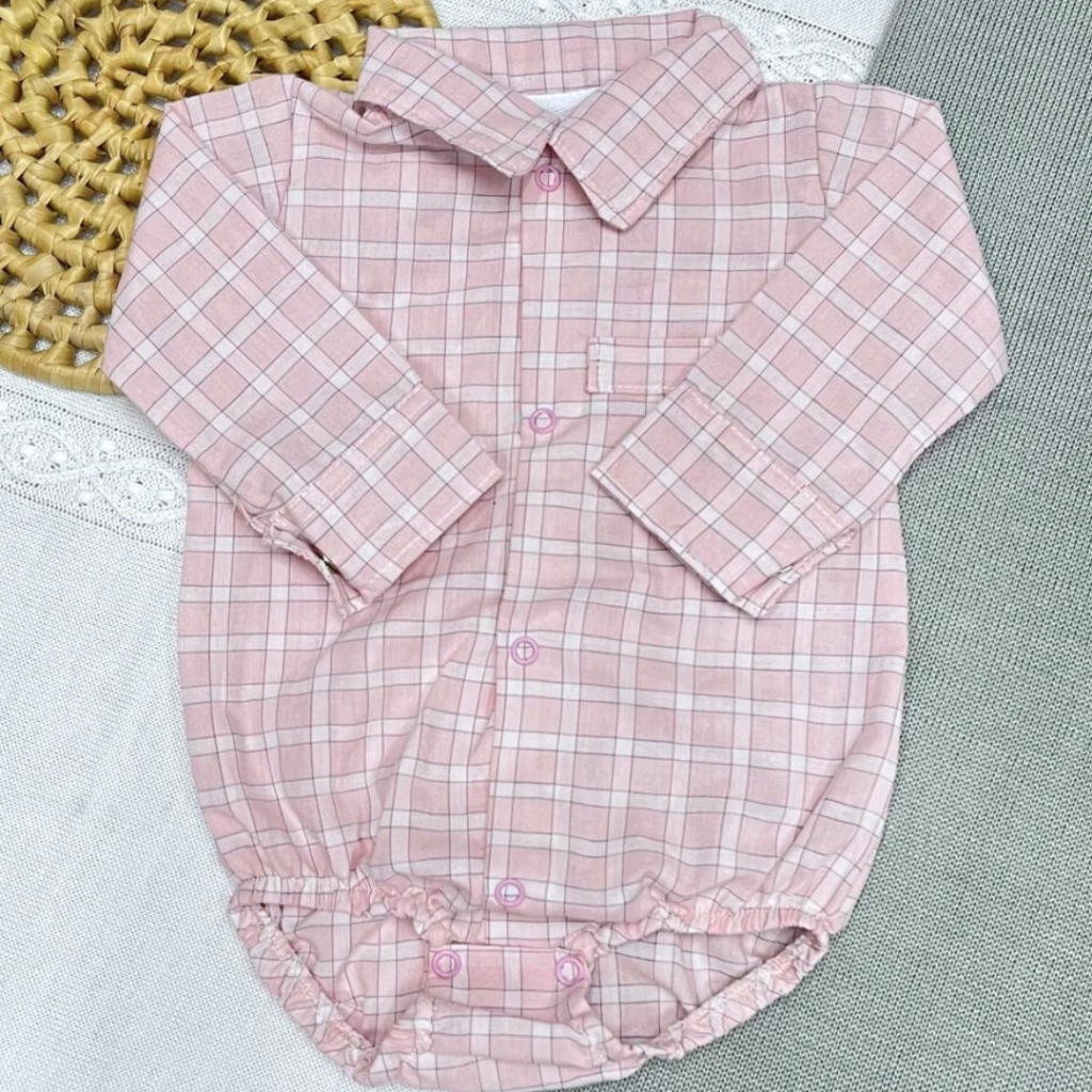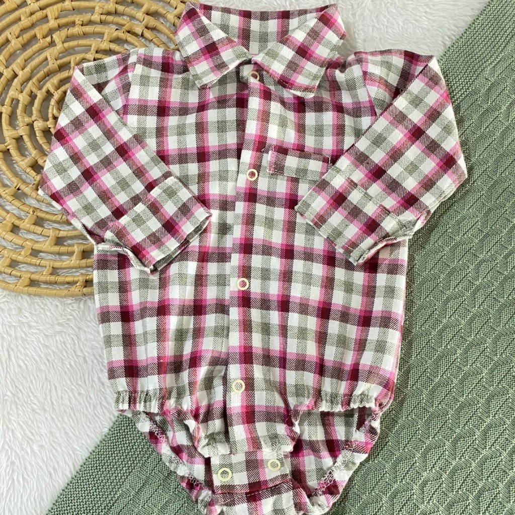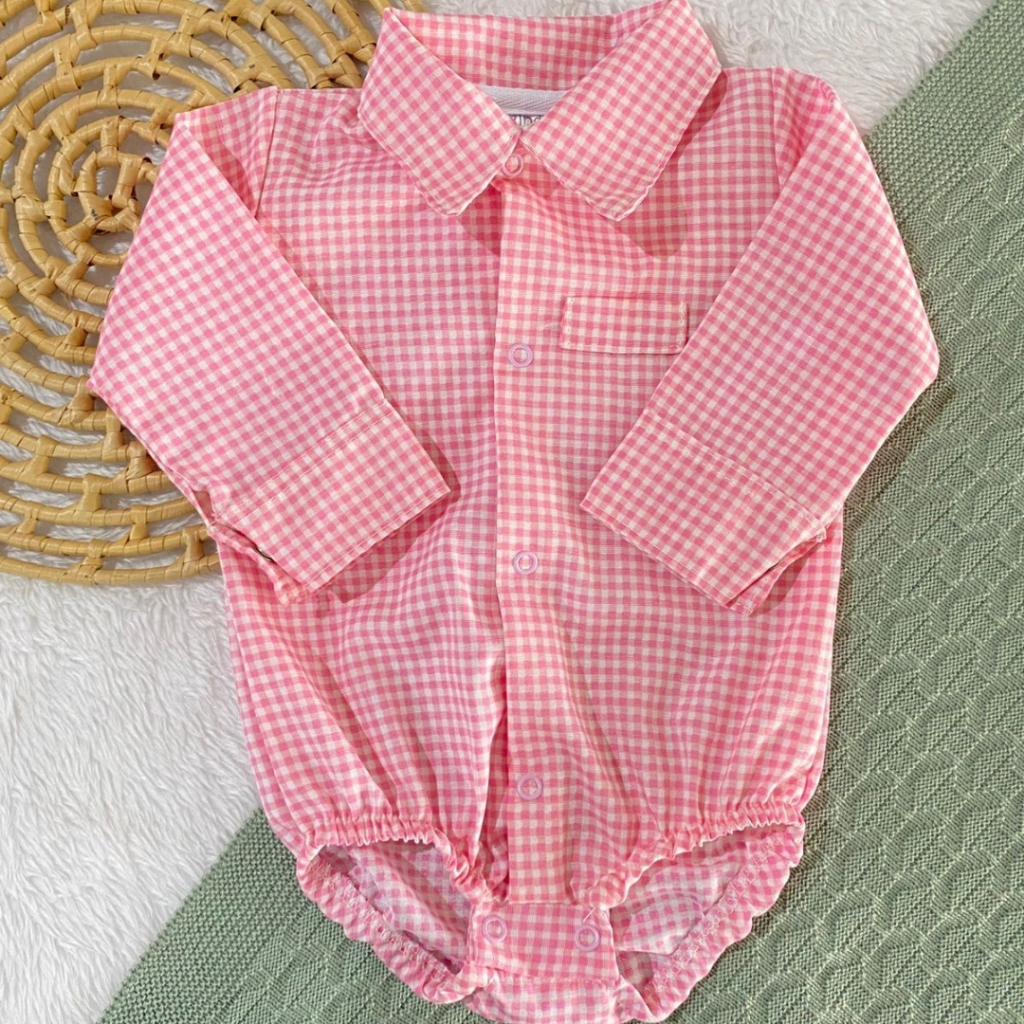 Body Camisa Xadrez p/ Bebê Menina | Manga Longa | Festa Junina | Mesversário Country | P, M, G