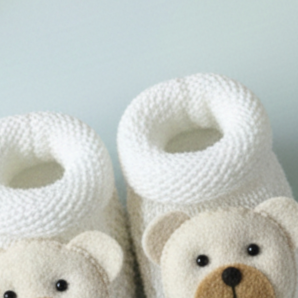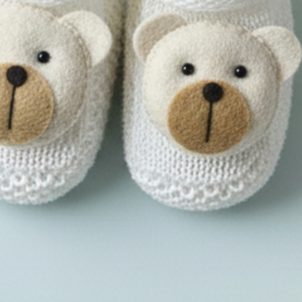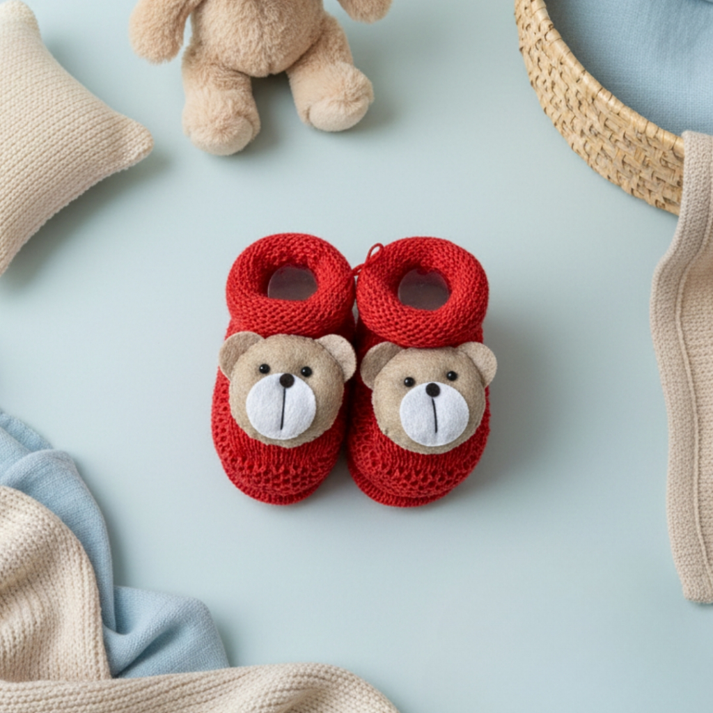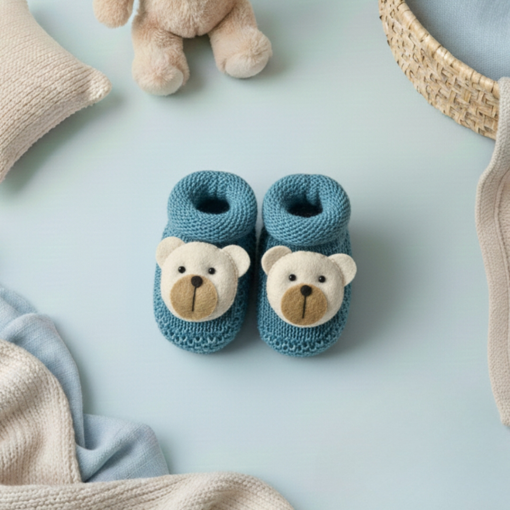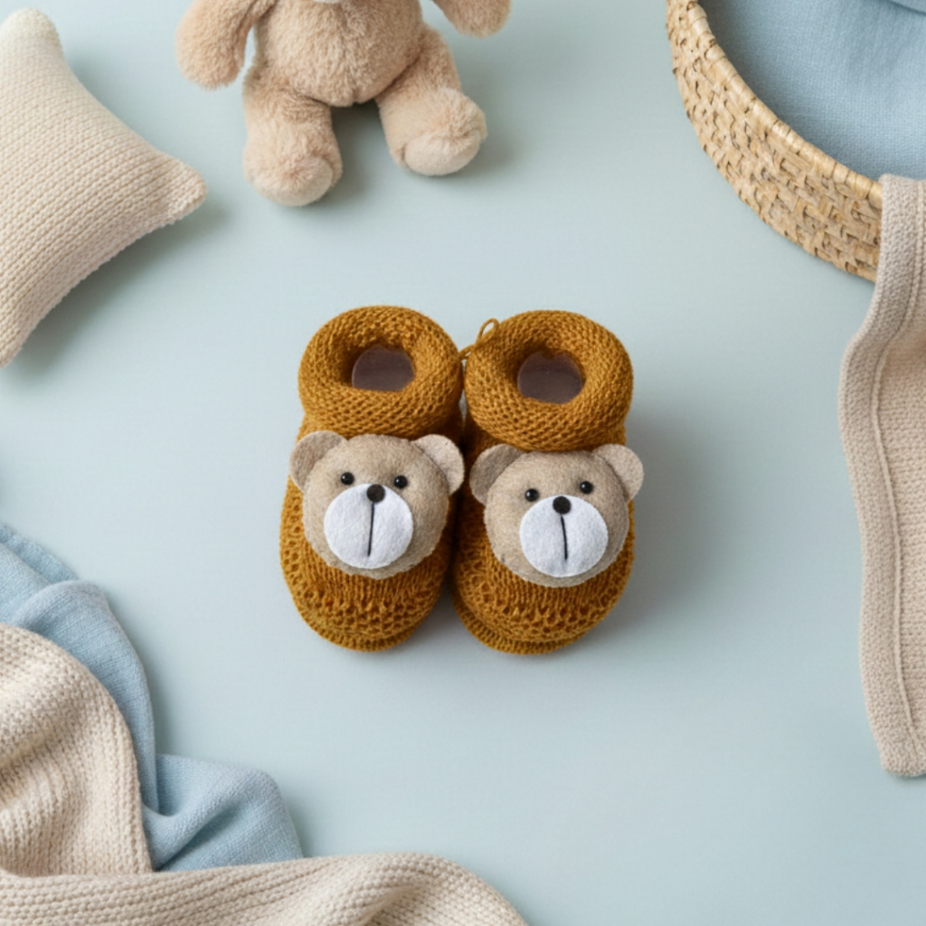 Sapatinho de Tricô Bebê Menino Recém-Nascido c/ Aplicação 3D Urso