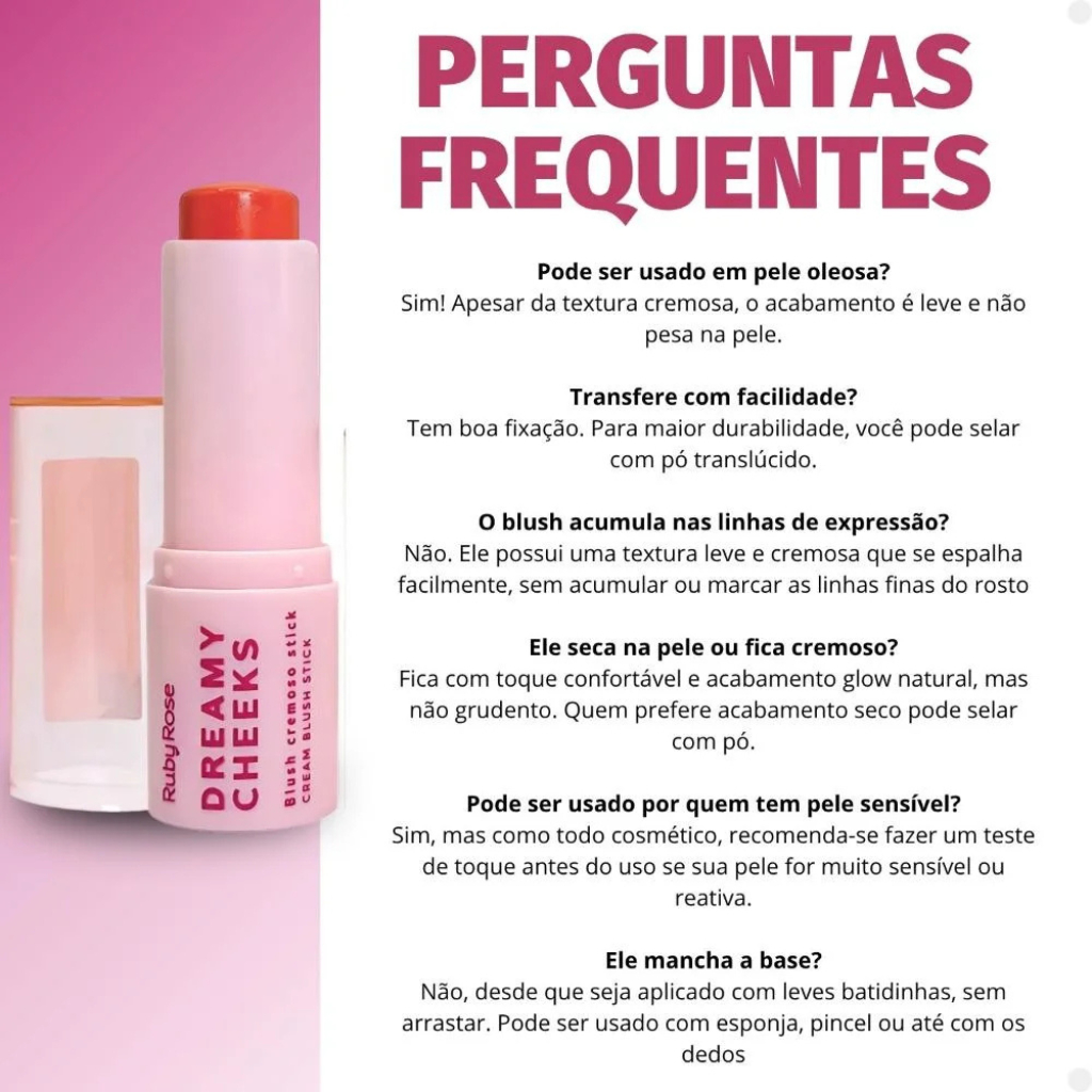 Blush Stick Ruby Rose Dreamy Cheeks Cremoso em Bastão 6,57g – Linha Rosa | HBM01