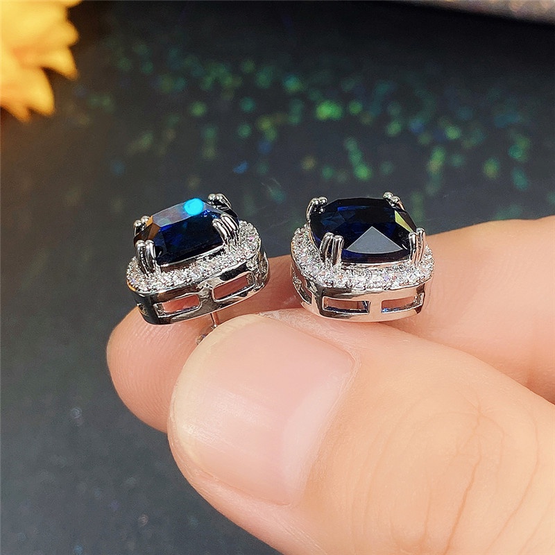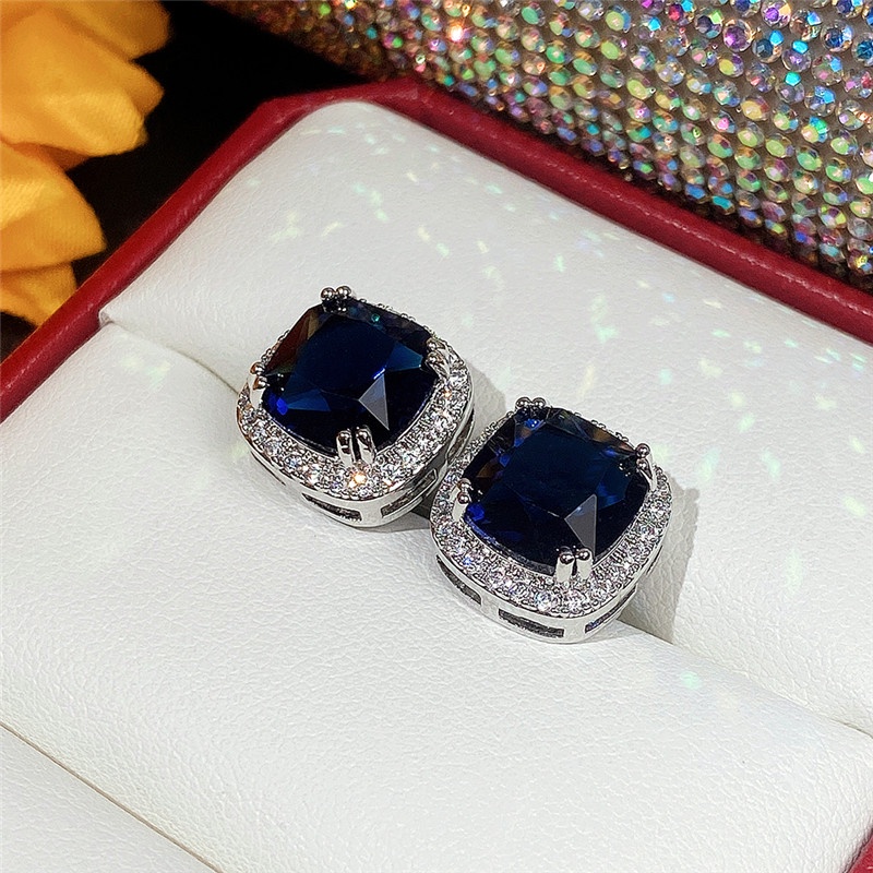100 % Sólido 925 Prata Esterlina Brilhante Zircônia Cúbica Brincos Para Mulheres Elegantes Azul CZ Acessórios De Orelha