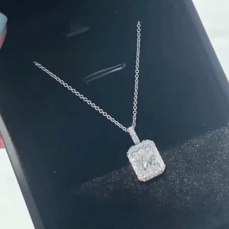 100 % Sólido 925 Prata Esterlina Luxo Moda Quadrado Zircônia Cúbica Pingente Colar Para Mulheres Acessórios De Casamento