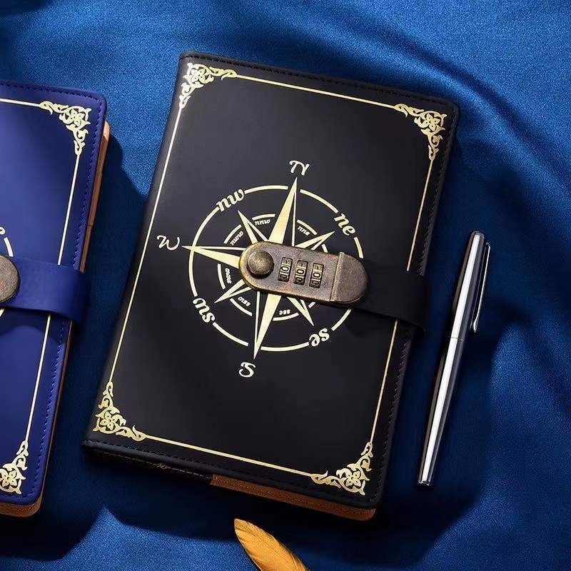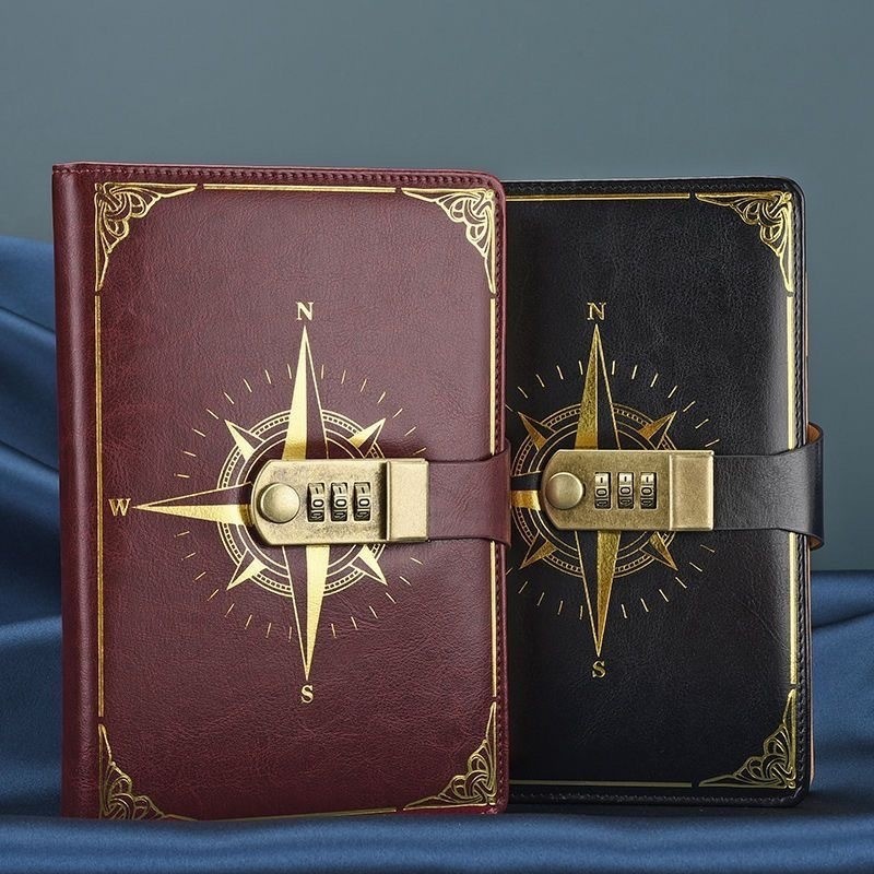 Caderno/diário estilo bússola com cadeado de combinação ajustável