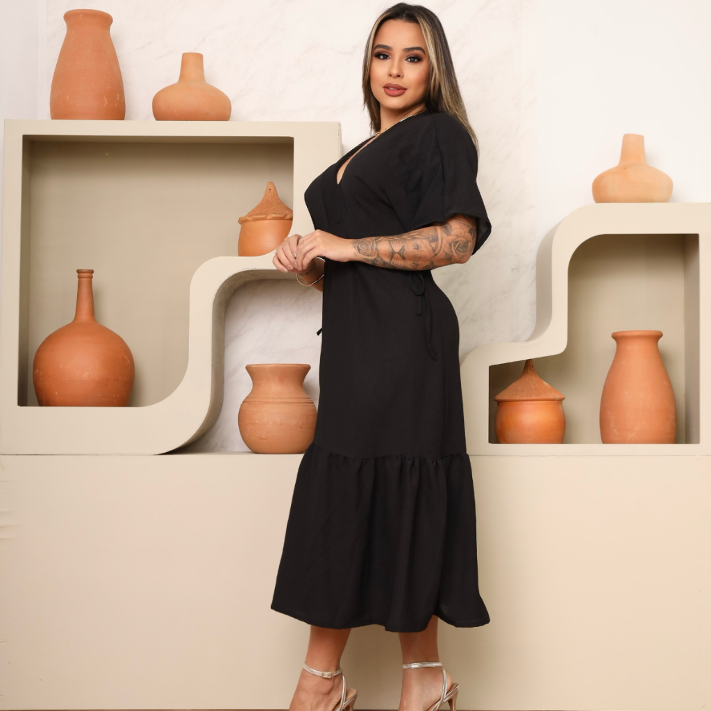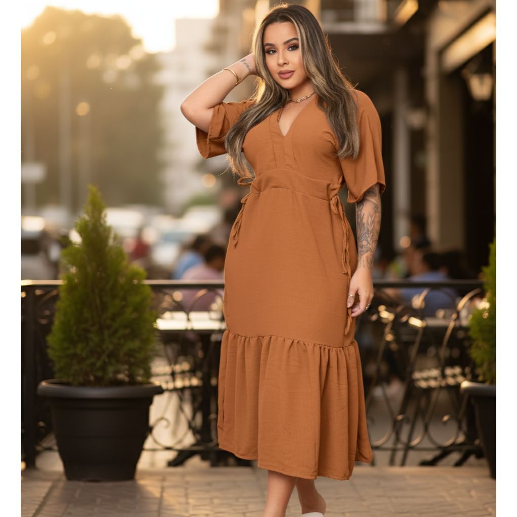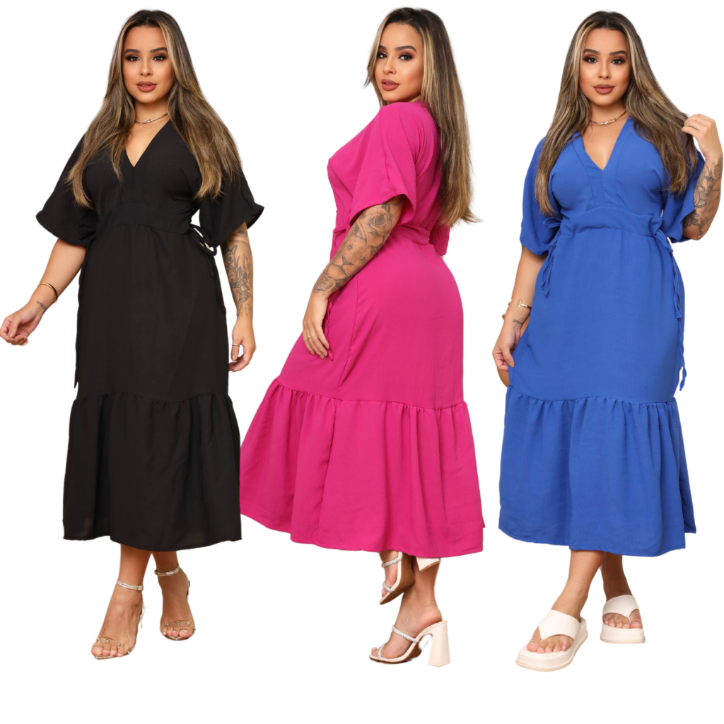 Vestido Feminino Moda Evangelica Verao Soltinho Elegante Fresquinho Midi Cristã Festa Formatura