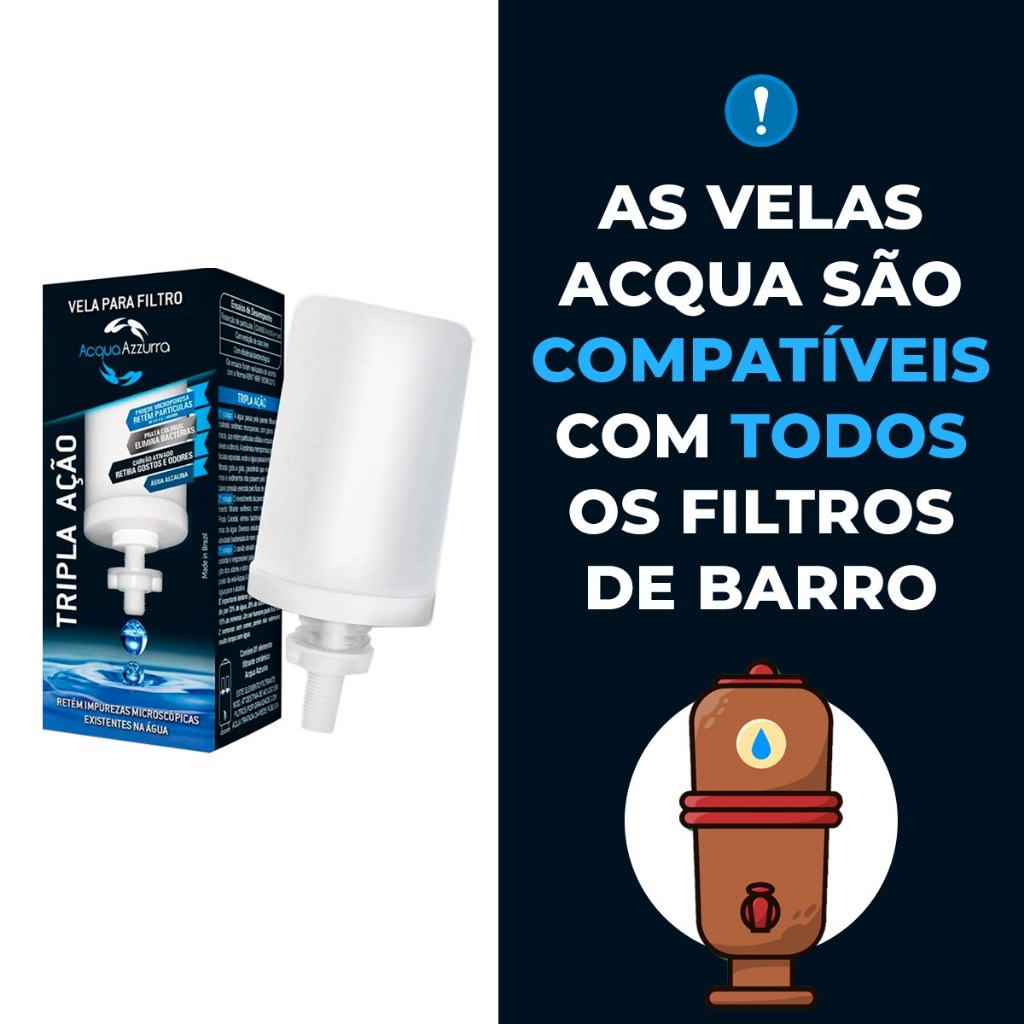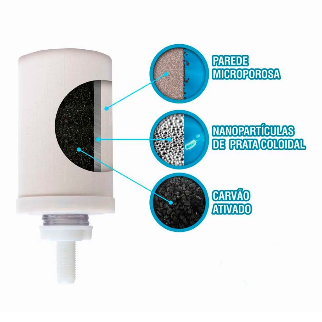 04 Velas Filtro de Barro ORIGINAL Tripla Ação Carvão Ativado Alcalina - ENVIO IMEDIATO