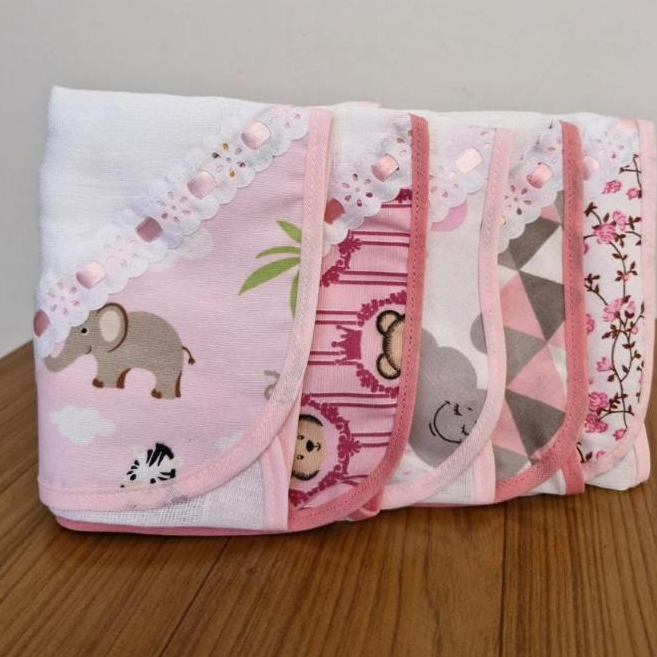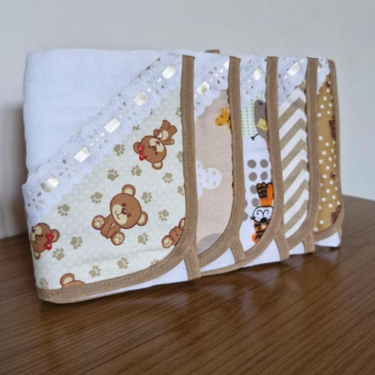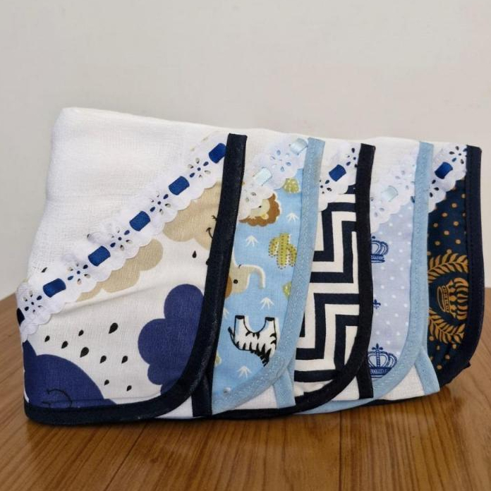 FRALDINHA DE BOCA KIT 5 UNIDADES ENXOVAL DO BEBÊ COM PRENDEDOR DE CHUPETA 100% ALGODÃO-PORTA CHUPETA