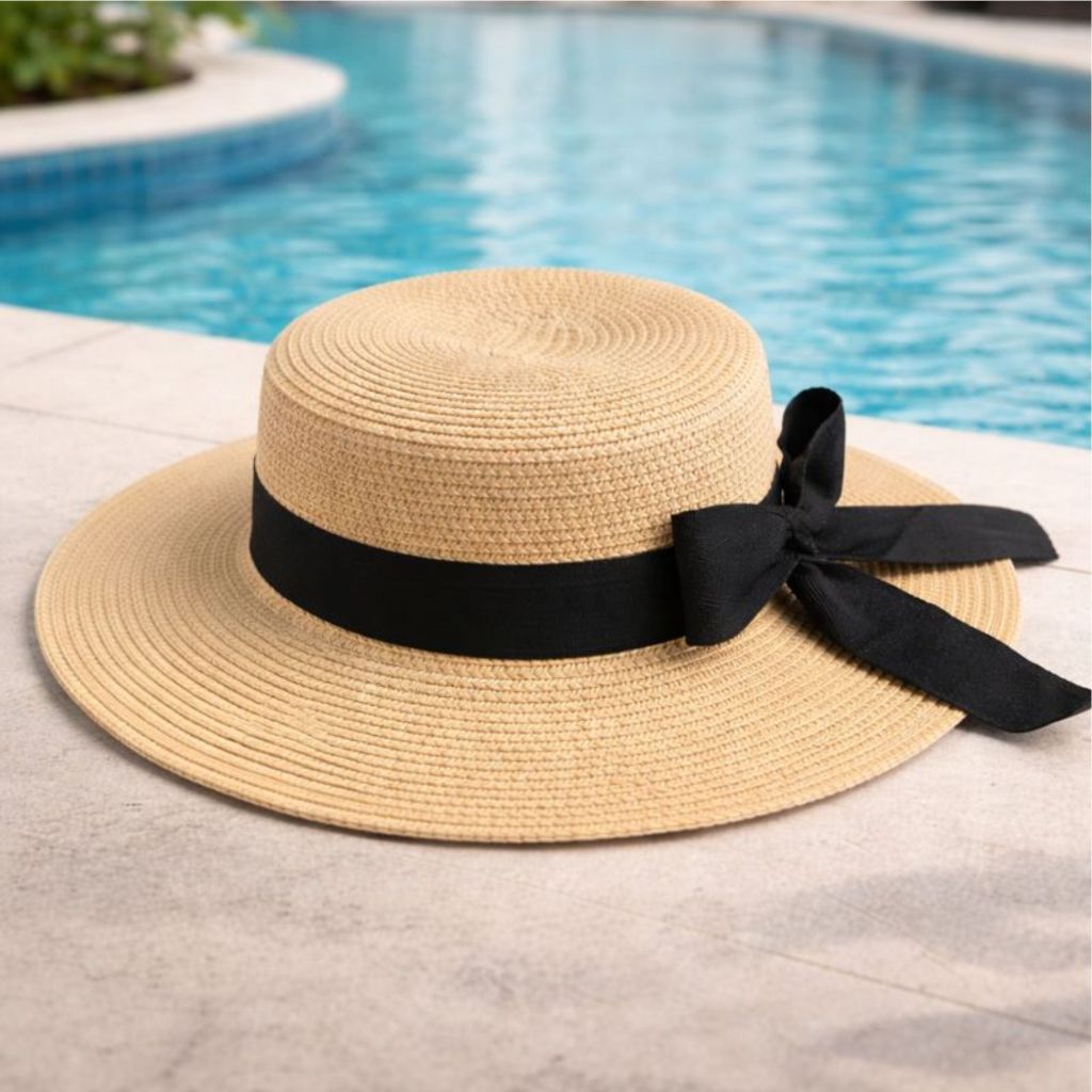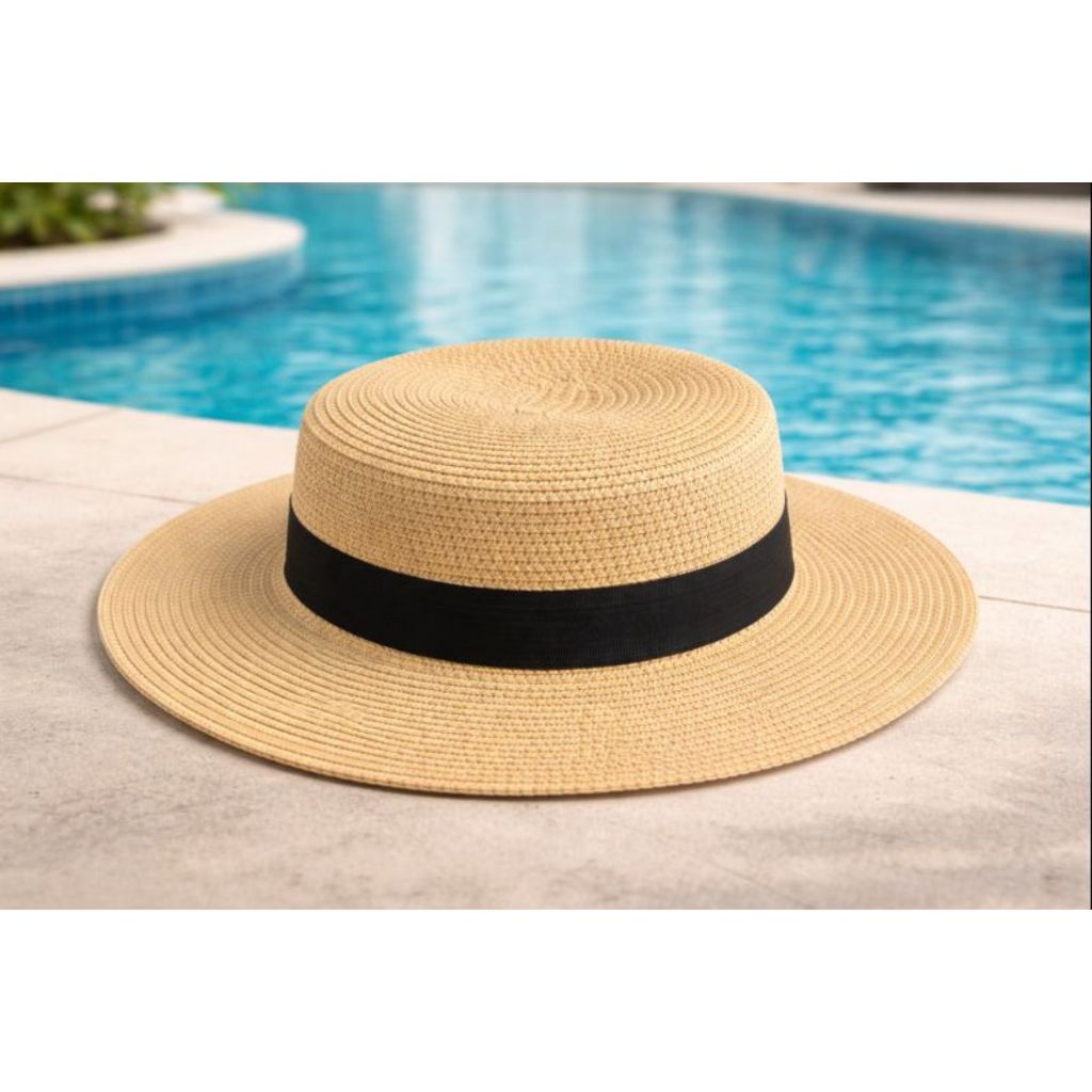 Chapéu Paris de Praia e Sol Masculino e Feminino Aba Média Cor Palha Com Fita Preta Resort Luxo