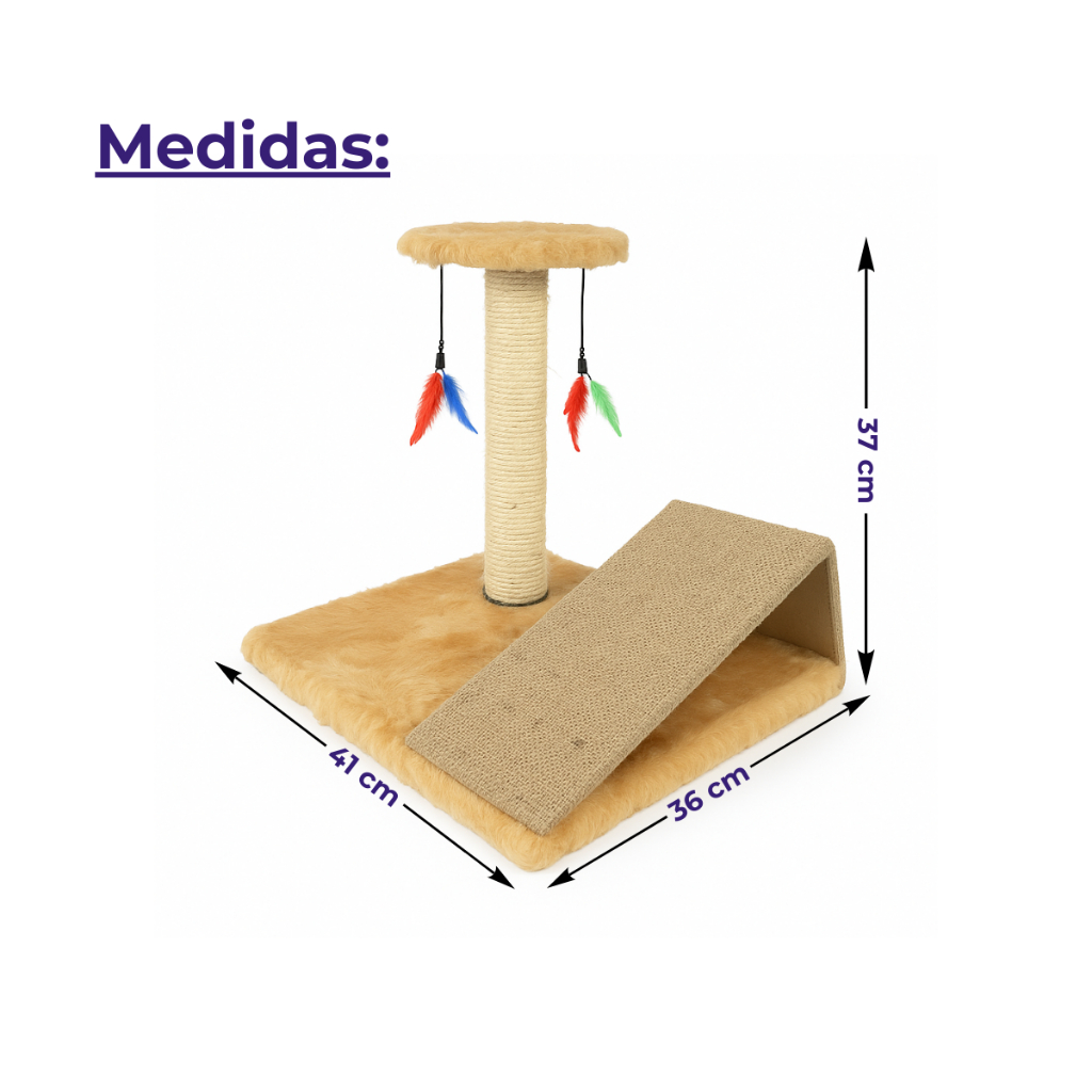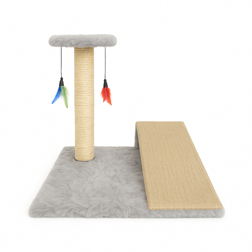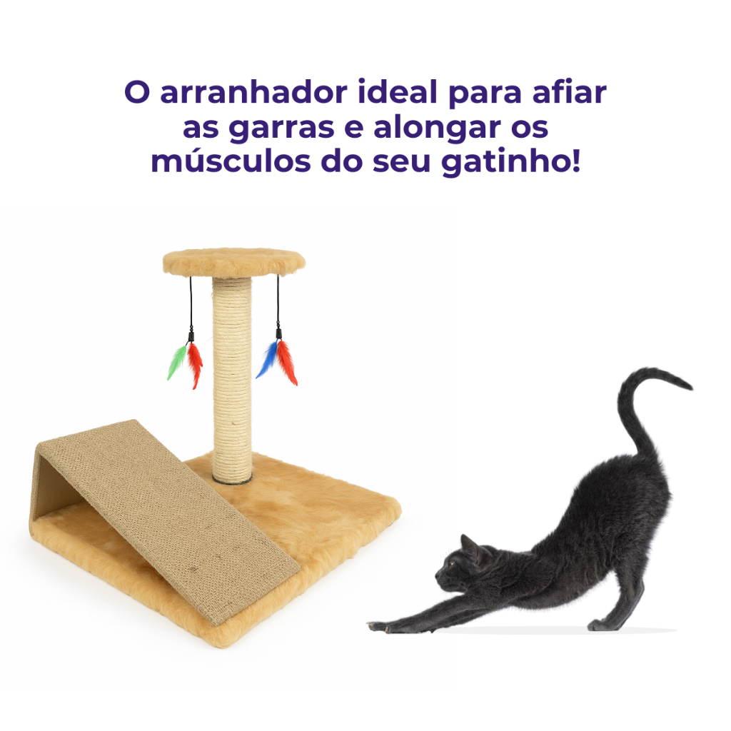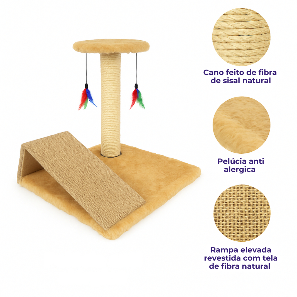Brinquedo para Gato Arranhador com Pena e Rampa Poste Sisal