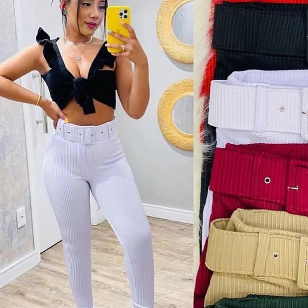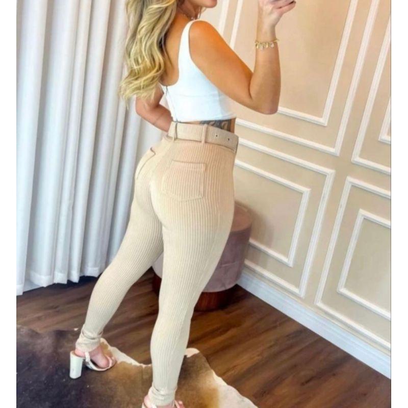 Calça Legging Feminina Skinny Leg Cintura Alta Canelada 3D Premium Nova Tendência Moda 5