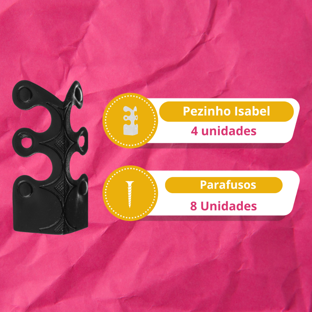 Cantoneira Pezinho Isabel Grande Artesanato 4 Unidades Decoração + Parafusos Caixa Baús MDF