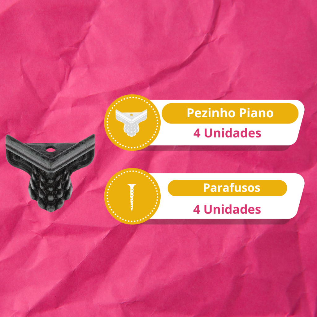 4 Pezinho Metal Piano Pequeno Decoração P/ Caixas Bandejas MDF Artesanato + Parafusos Ferragens