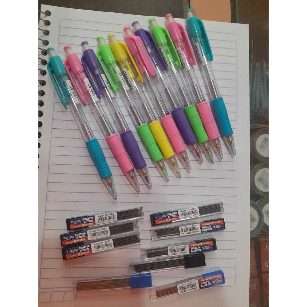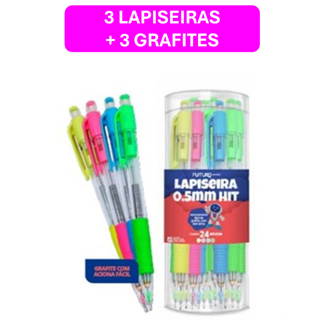 KIT COM 3 LAPISEIRAS HIT 0.5 OU 0.7 + 3 ESTOJOS COM 12 GRAFITES