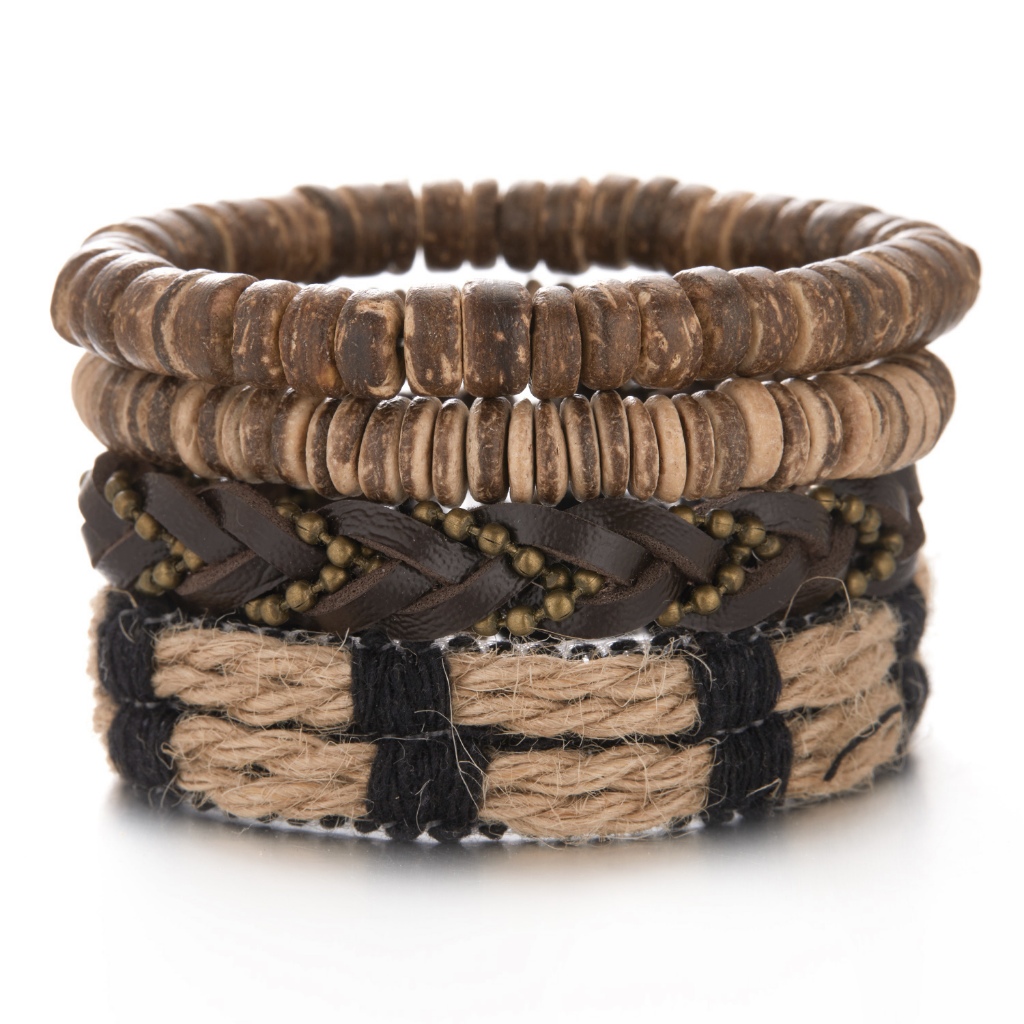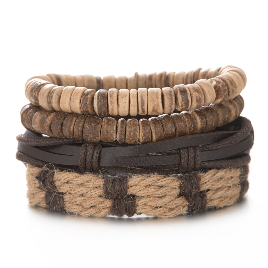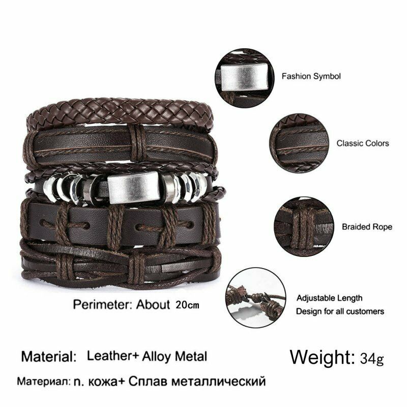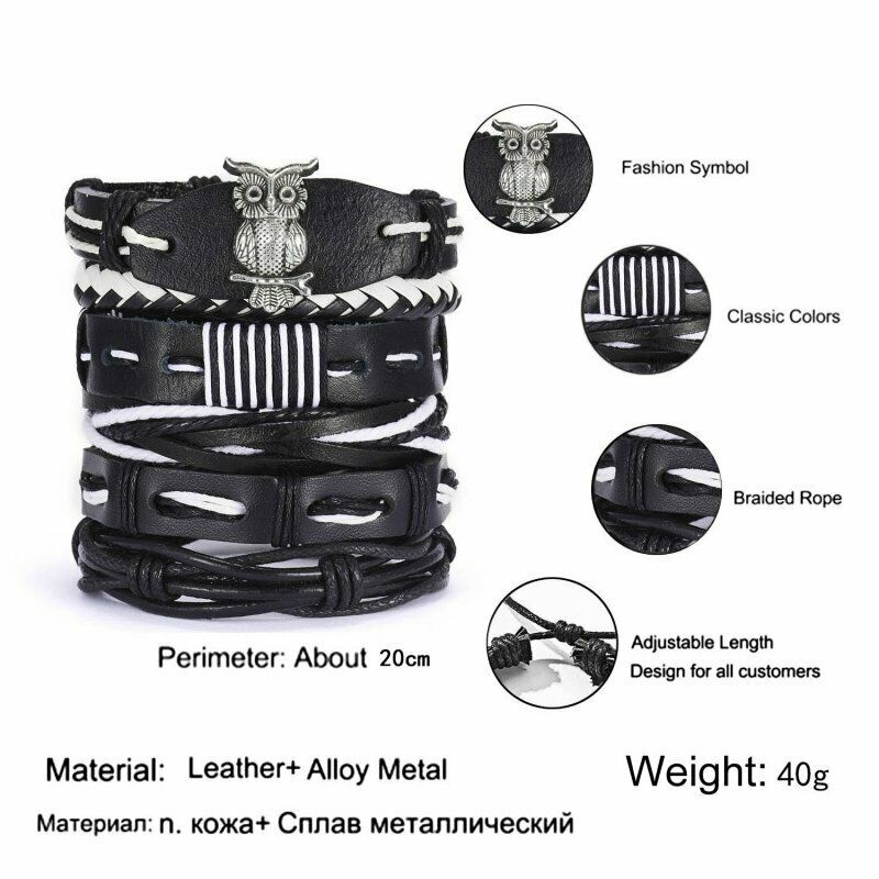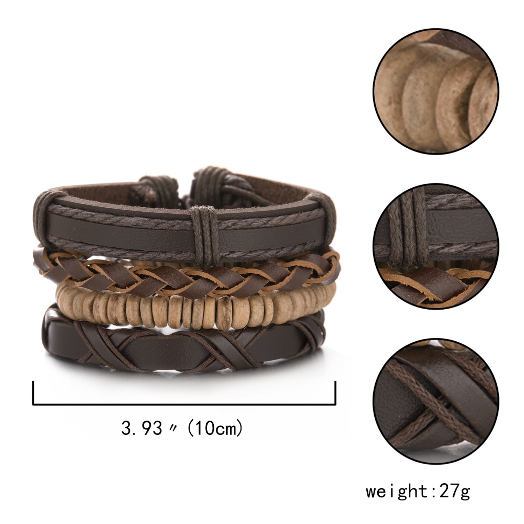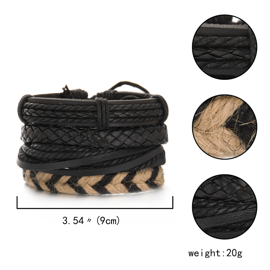 1/3/4/5/6pcs 1 Conjunto Pulseiras Combinadas Homens Punk Leather Beads Leaf Wrap Pulseira Trançado Bangle Atacado