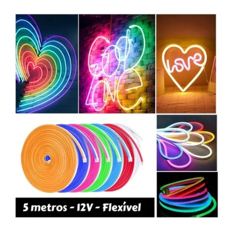 Fita de led 05 Metros Led Neon Silicone Corte 2,5cm Flex 12v Brilho