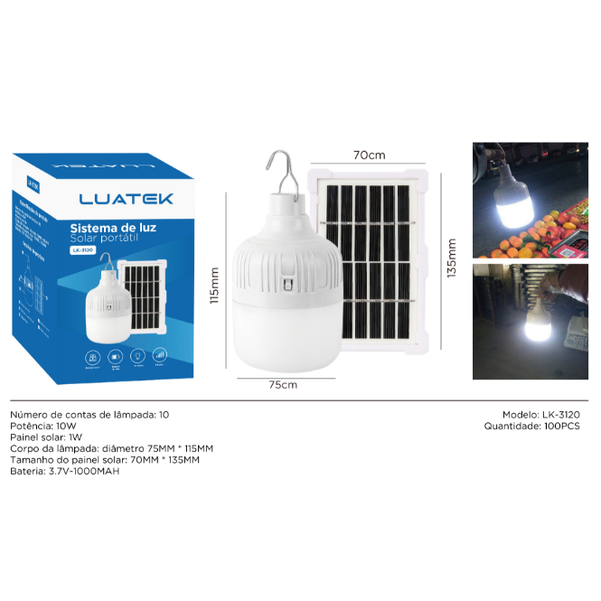 Lâmpada Led Solar Portátil - Iluminação De Acampamento