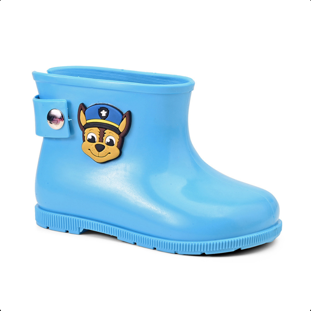 Kit Menino 2 Pares Bota Galocha Impermeável + Babuche Infantil Patrulha Preto/Azul