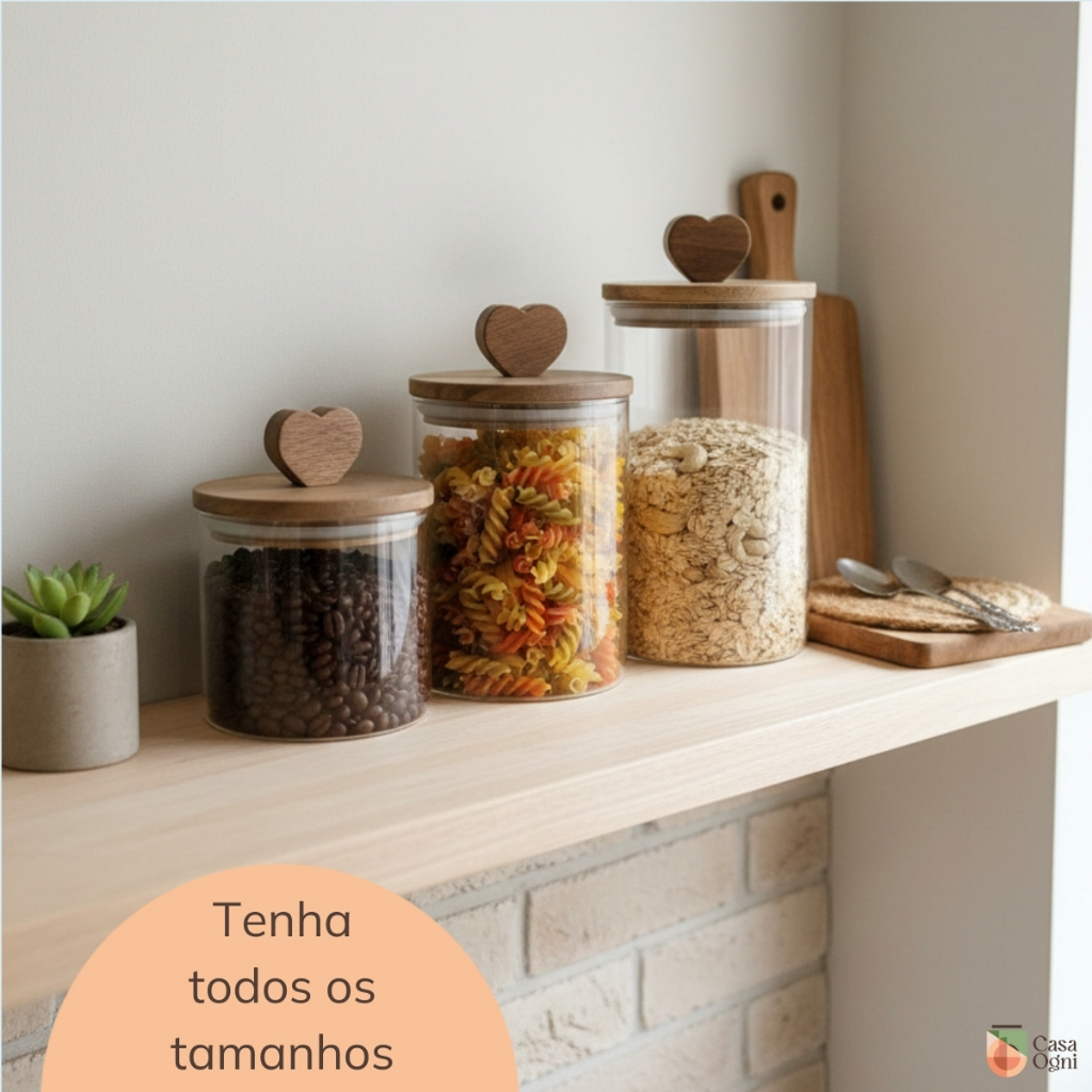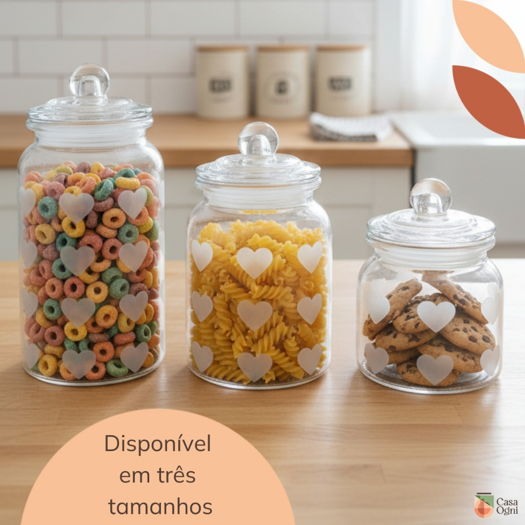 Pote de Vidro Hermético Âmbar Transparente Coração Afeto Porta Mantimentos Alimentos Cozinha