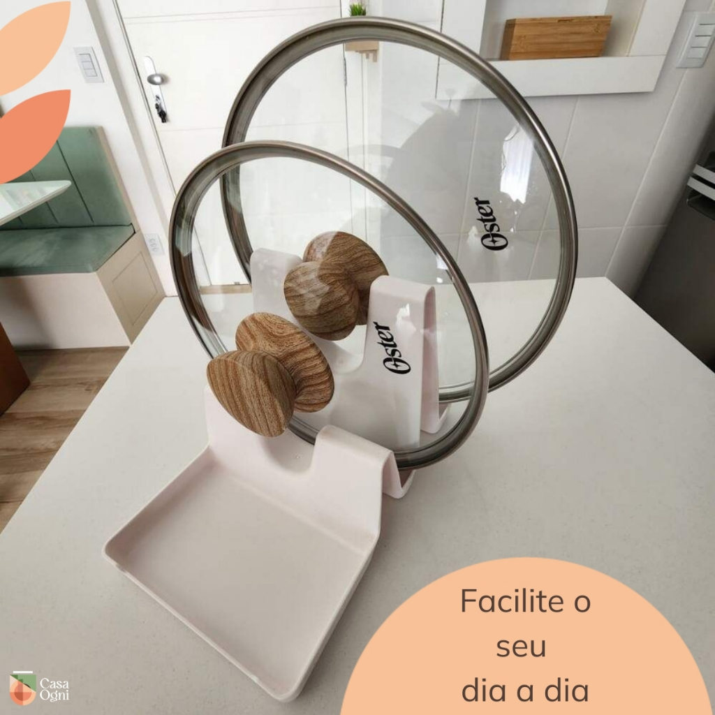Descanso para Tampa de Panela com Suporte Apoio de Colher Utensilios de Bambu Plástico para Cozinha