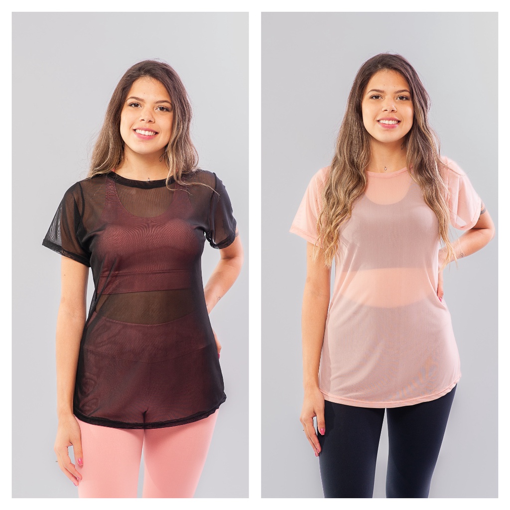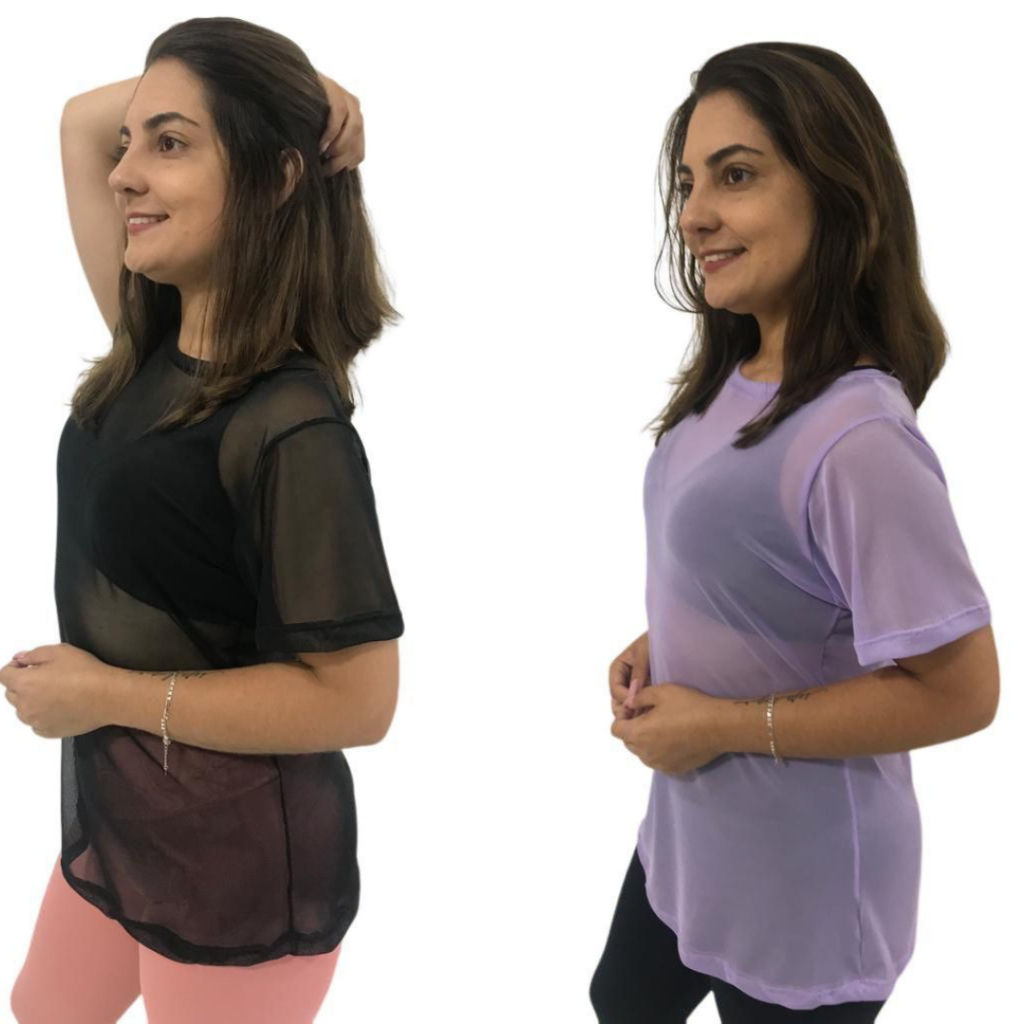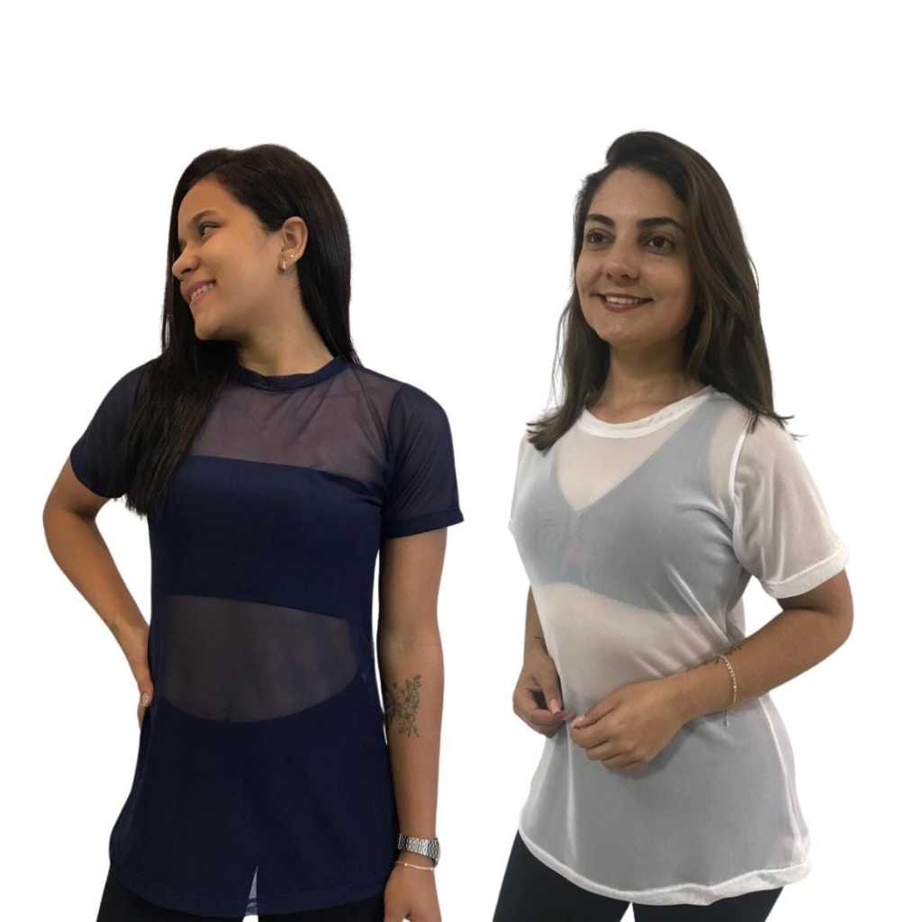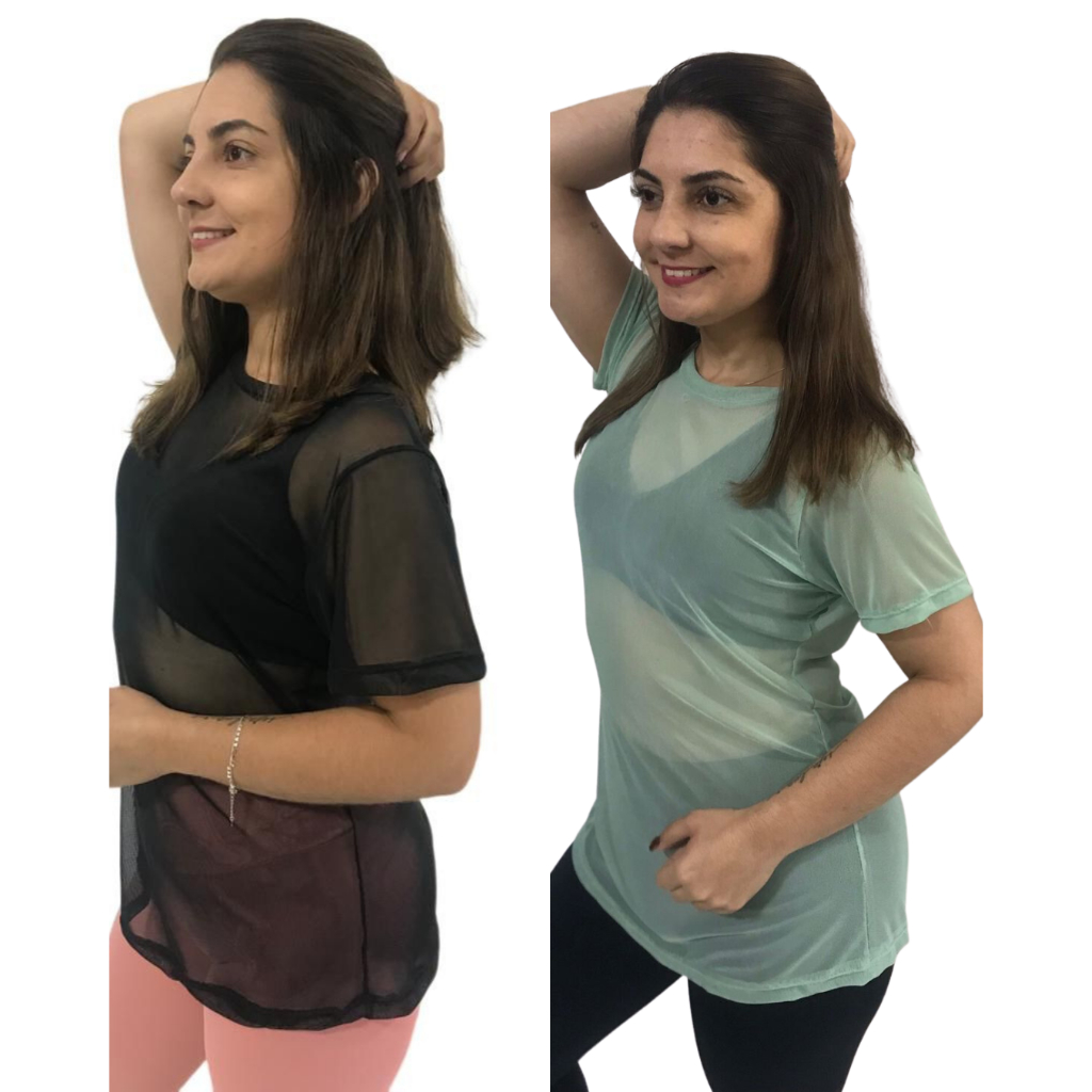 Kit 2 Blusa Feminina de Tule academia fitness transparente