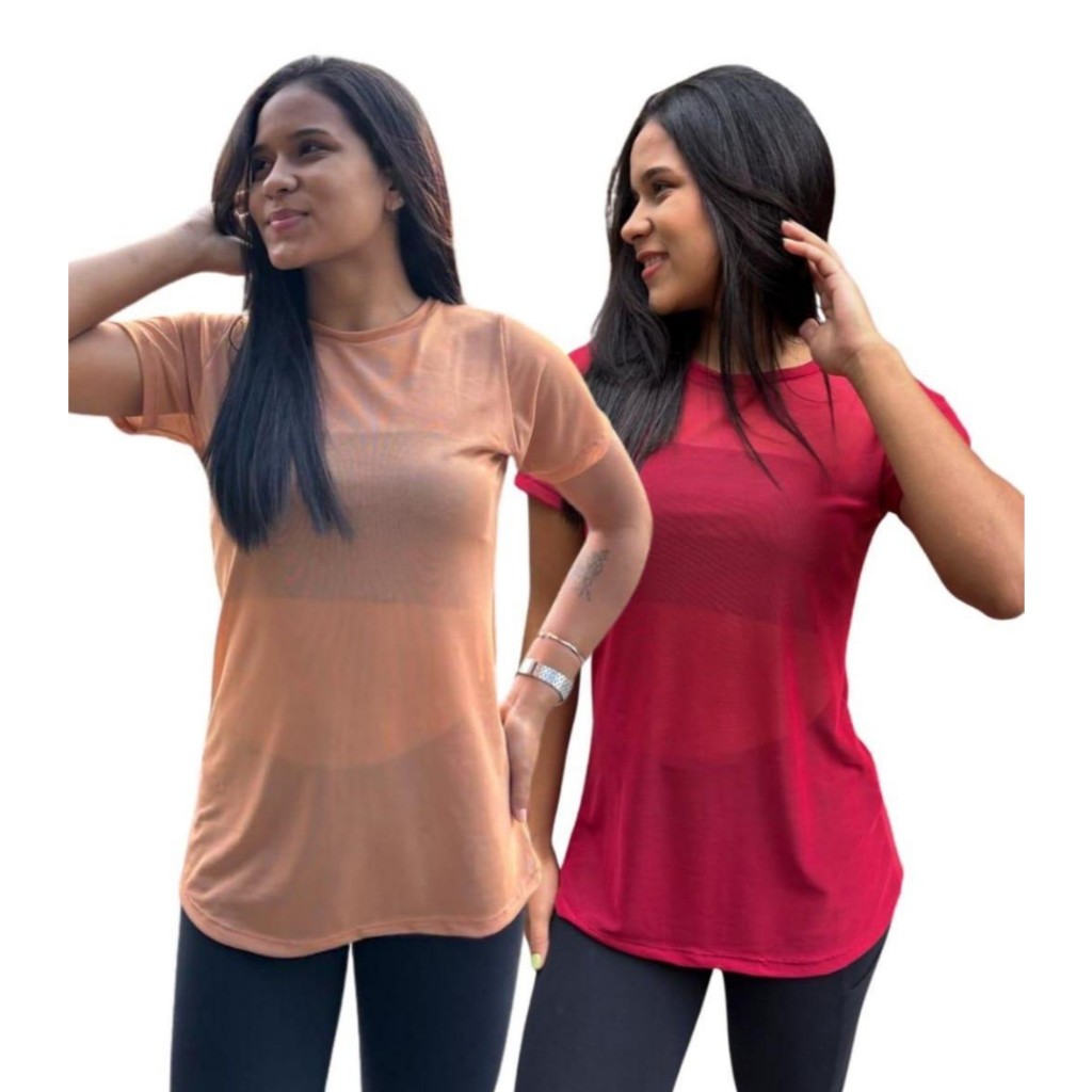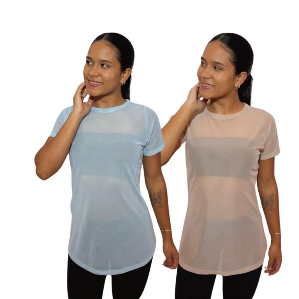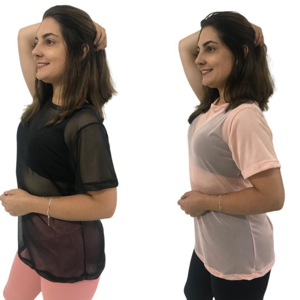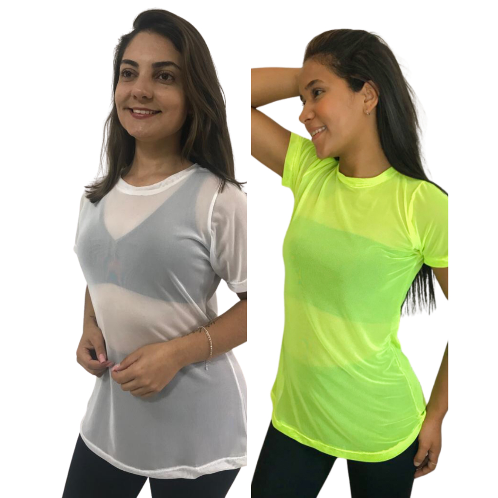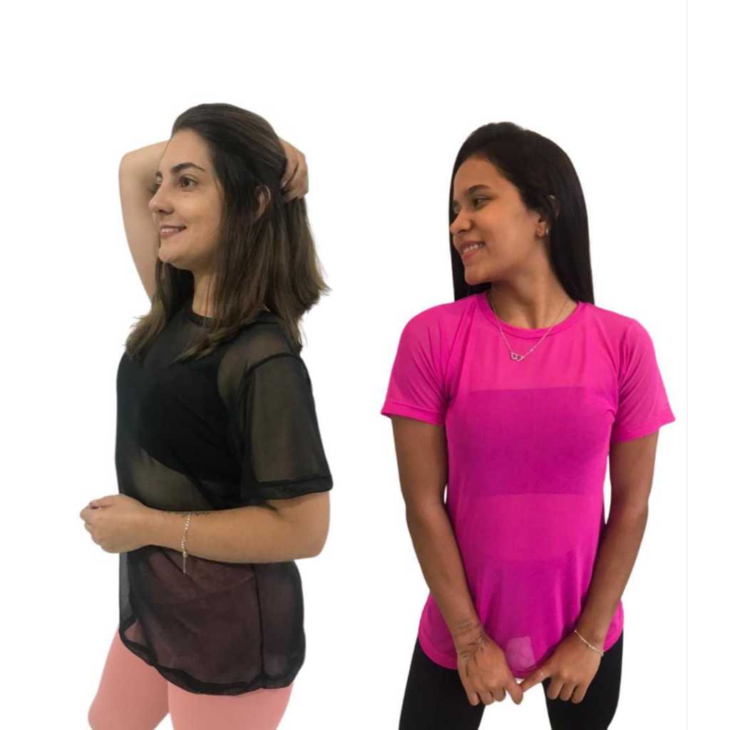 Kit 2 Blusa Feminina de Tule academia fitness transparente