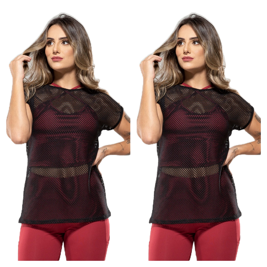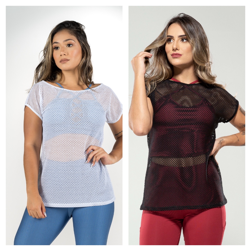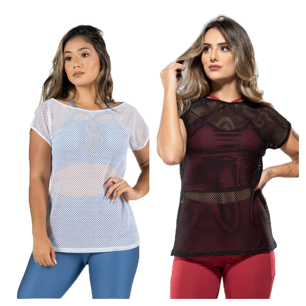 Kit 2 Blusa Feminina Fitness de Tela Branca Roupa de Academia