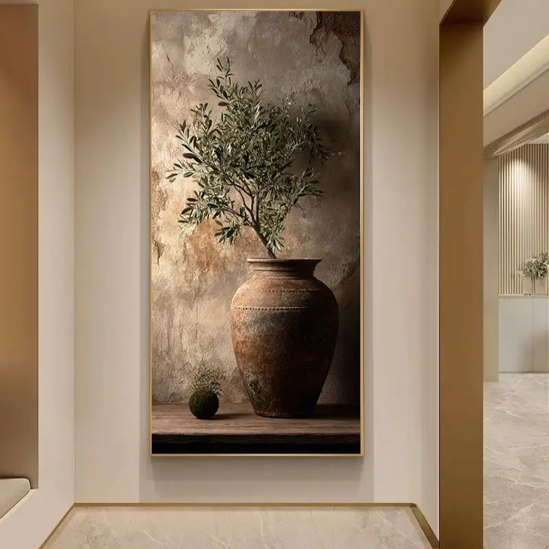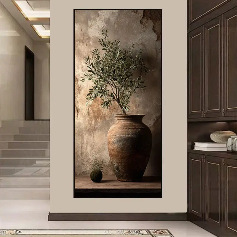 quadro Grande Minimalista Moderna de Olival em Vaso Rústico - Arte de Parede Sem Moldura