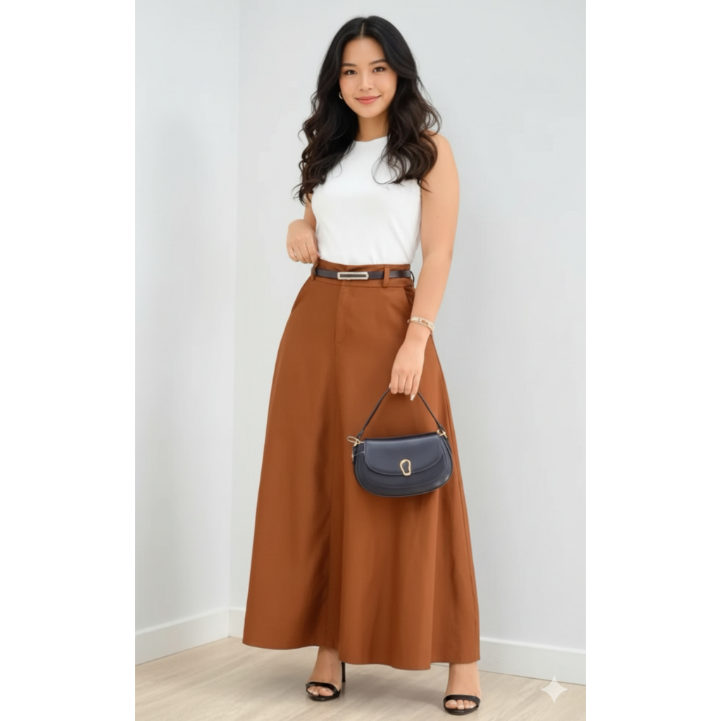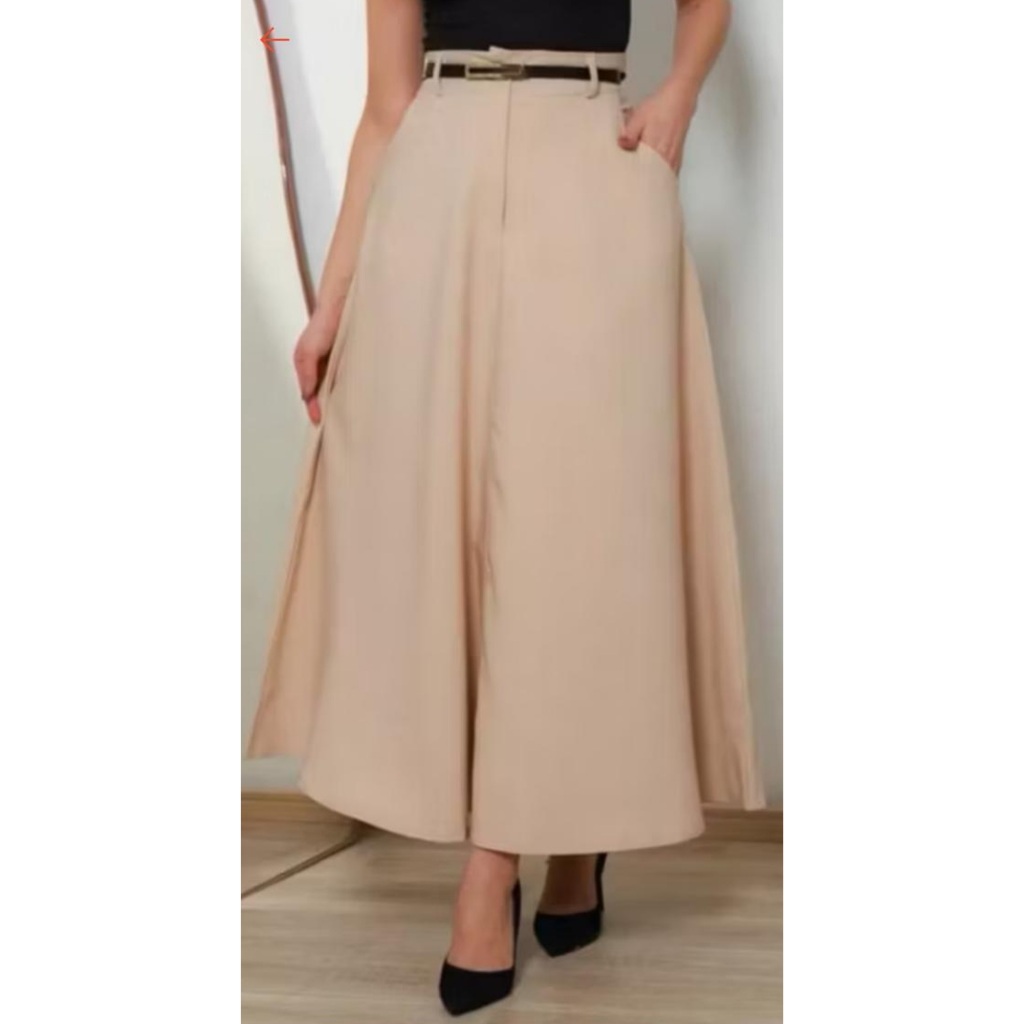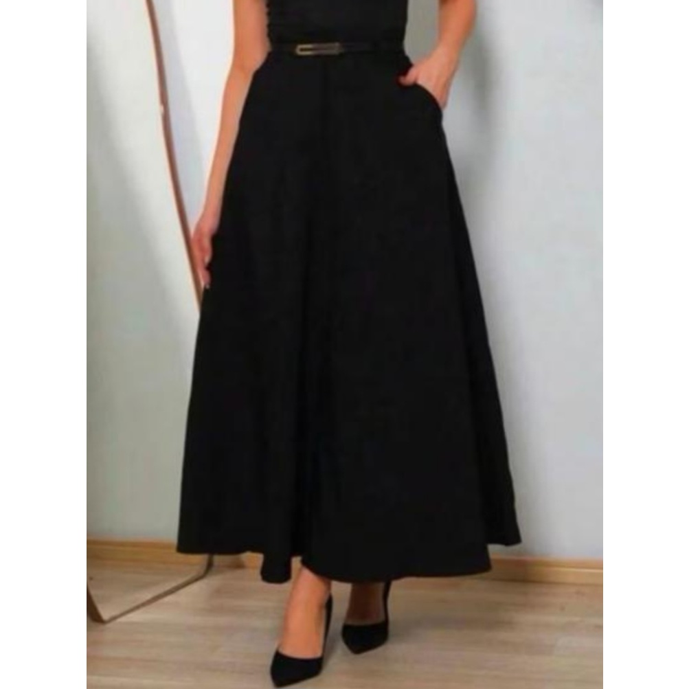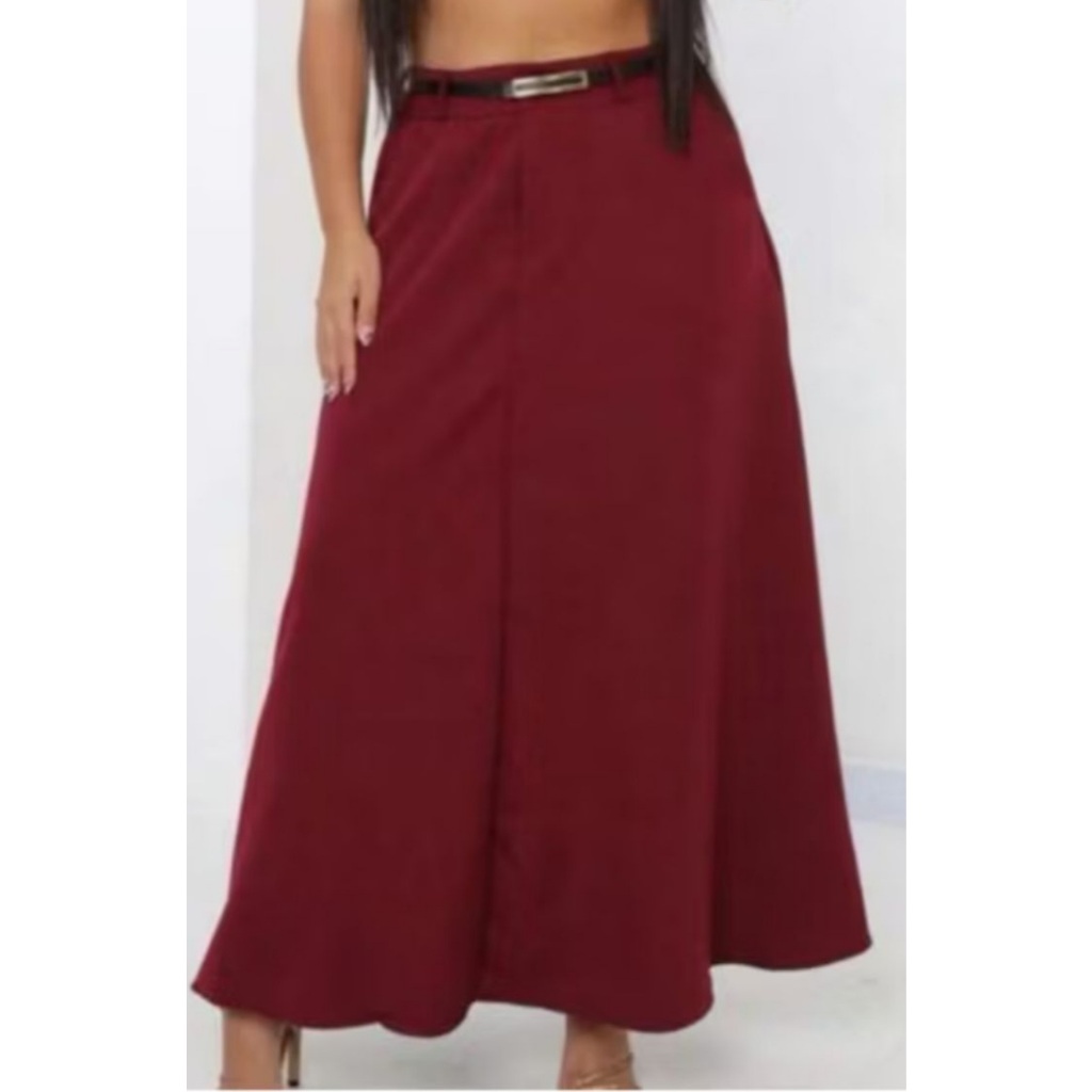 Saia Longa Rodada Feminina Alfaiataria Cintura Alta Com zíper Botões Com Frrada Social Com bolsos laterais Com cinto