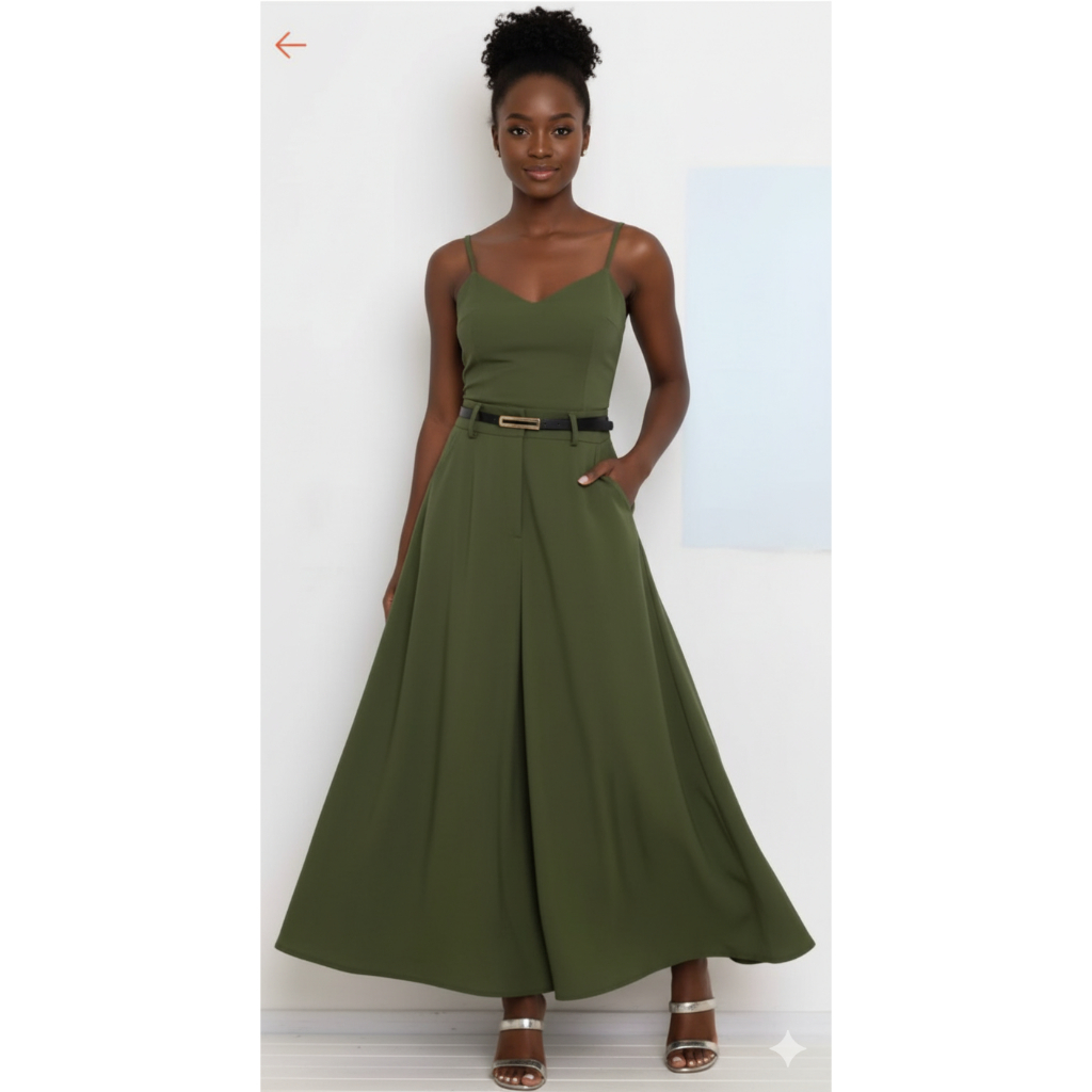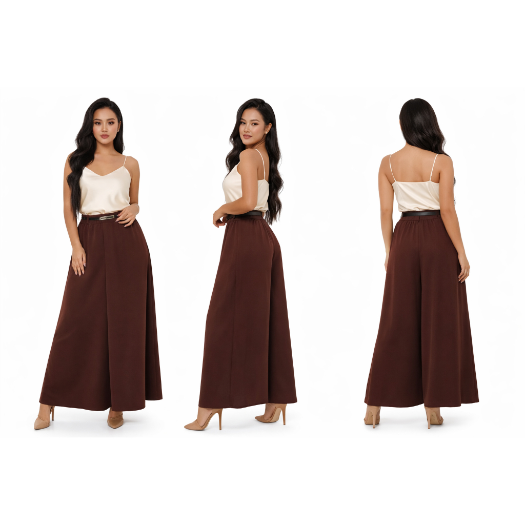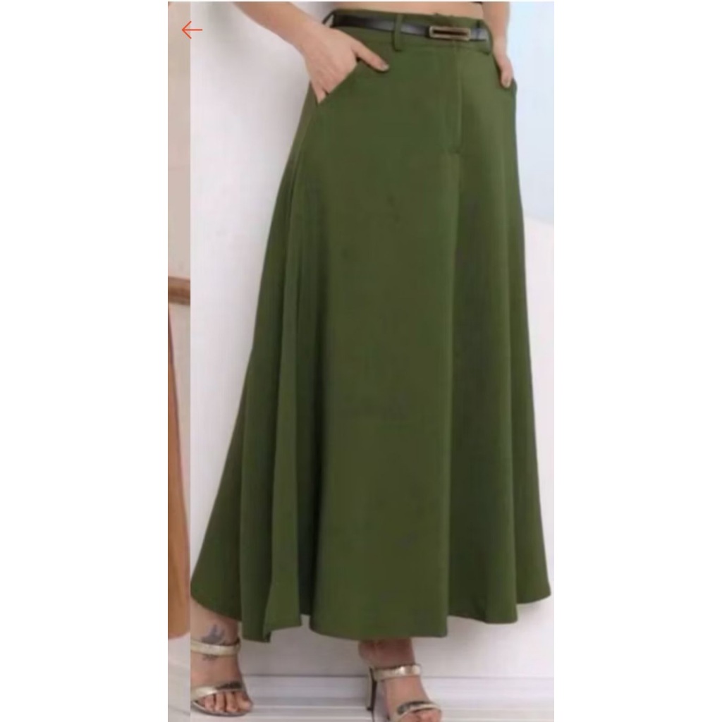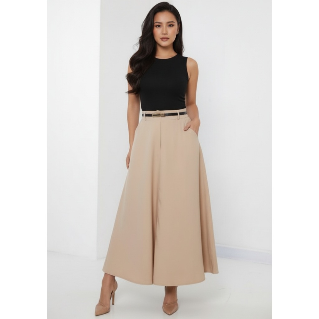 Saia Longa Rodada Feminina Alfaiataria Cintura Alta Com zíper Botões Com Frrada Social Com bolsos laterais Com cinto