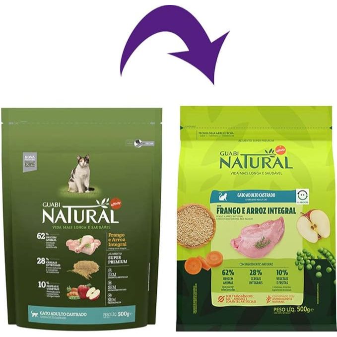 Racao Guabi Natural Gatos Castrados Frango/Arroz 7,5kg