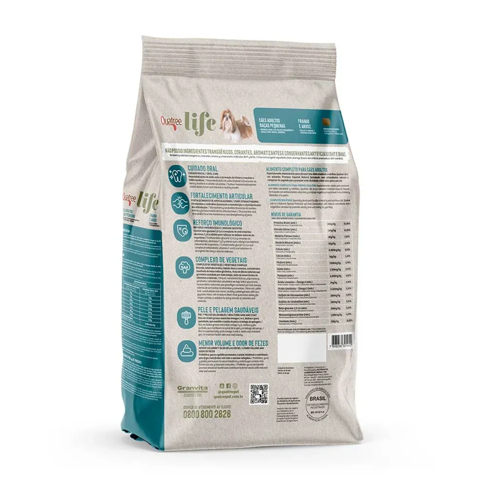 Ração Quatree Life Cães Adultos Raças Pequenas Frango e Arroz - 10,1kg