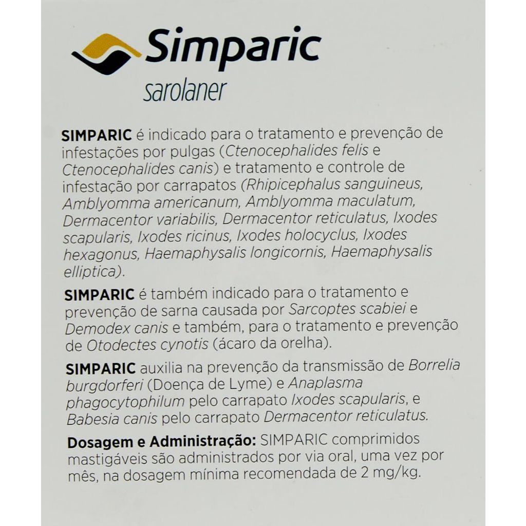 Antipulgas Zoetis Simparic 10 Mg Para Caes 2,6 A 5 Kg