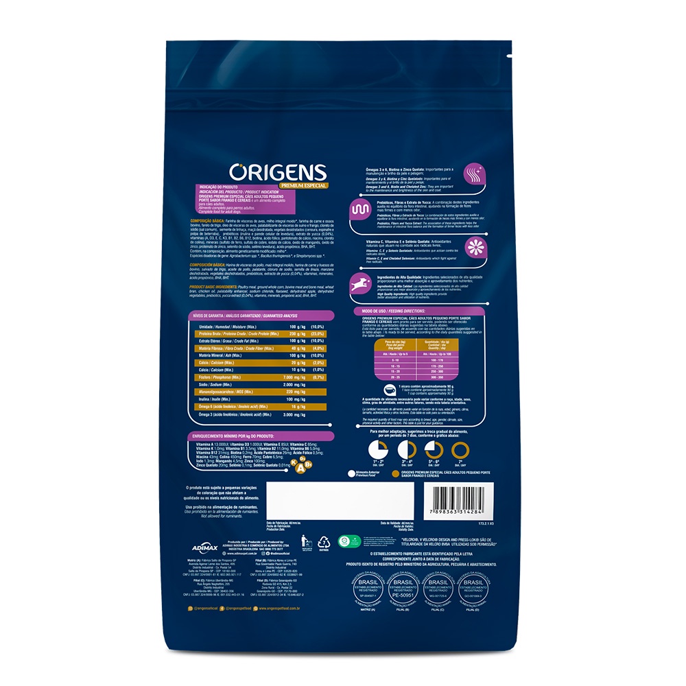 Ração Origens Cães Adultos Frango e Cereais Raças Pequenas - 10,1kg
