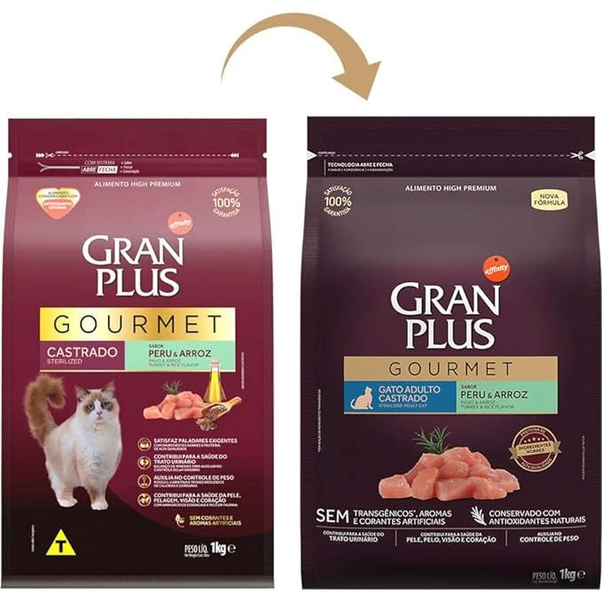 Ração Gran Plus Gourmet Gatos Castrados Peru e Arroz - 10,1Kg