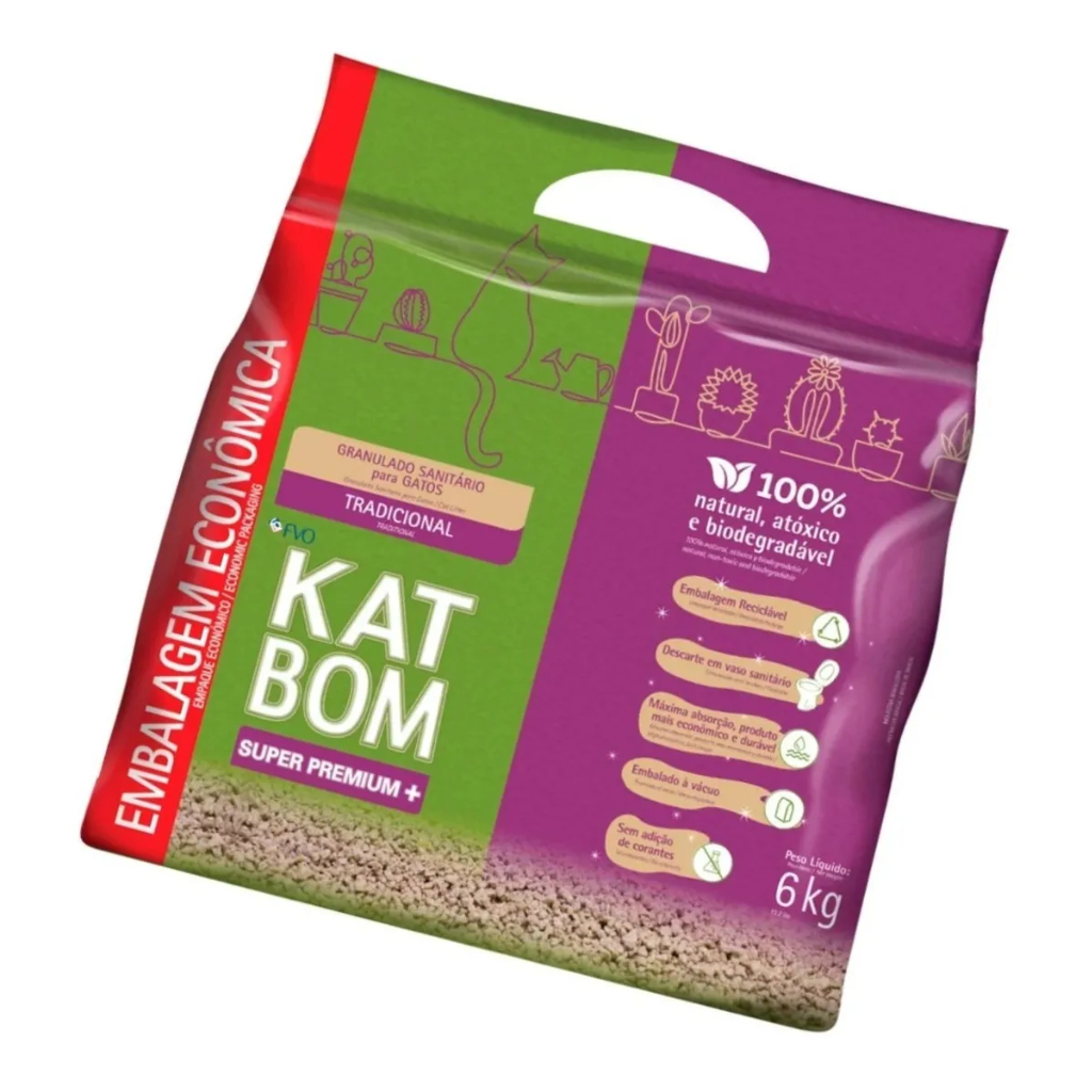 Areia Higiênica Katbom Para Gatos Granulado Tradicional - 6kg