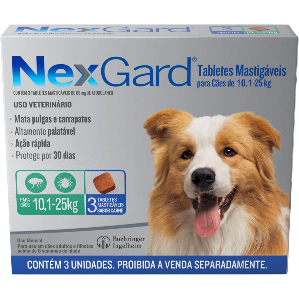 Nexgard Antipulgas E Carrapatos Caes 10,1 A 25kg C/3 Comprimidos.
