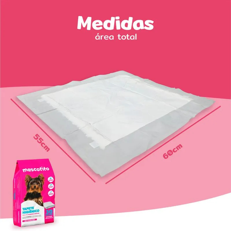 Kit 2 Tapetes Higiênicos Mascotito 60x55cm C/30 Unidades Cada