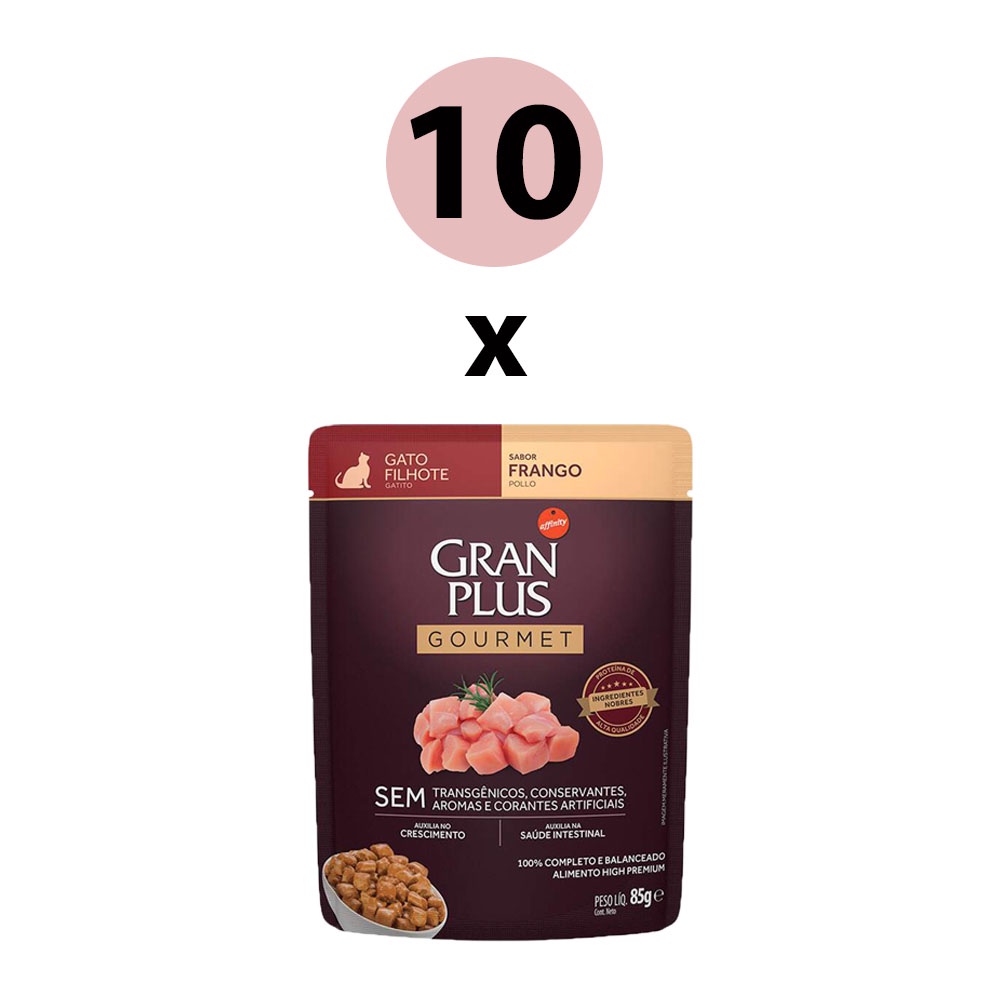 Ração Úmida Gran Plus Gourmet Gatos Filhotes Frango Sachê 85g