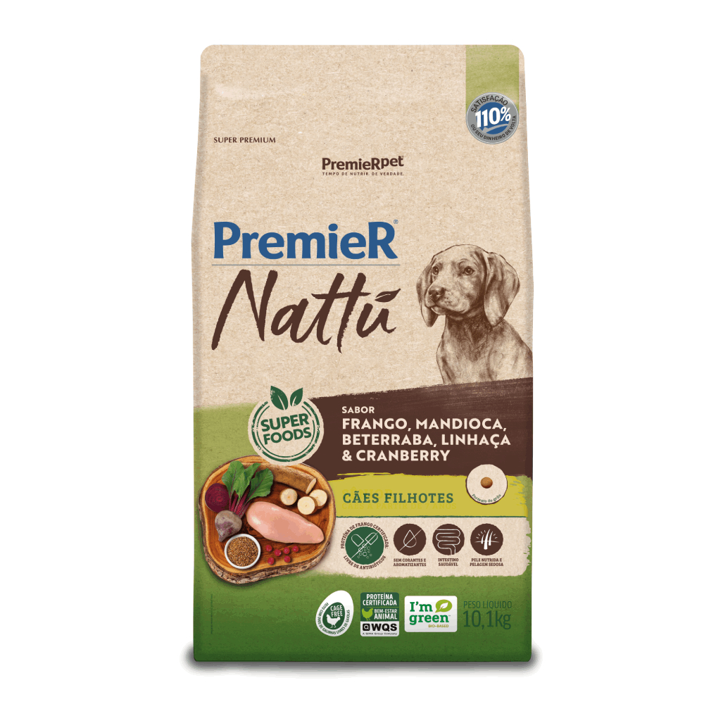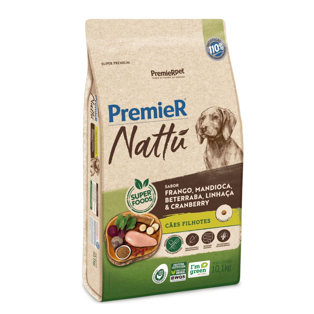 Ração Premier Nattu Cães Filhotes Frango e Mandioca 10,1kg