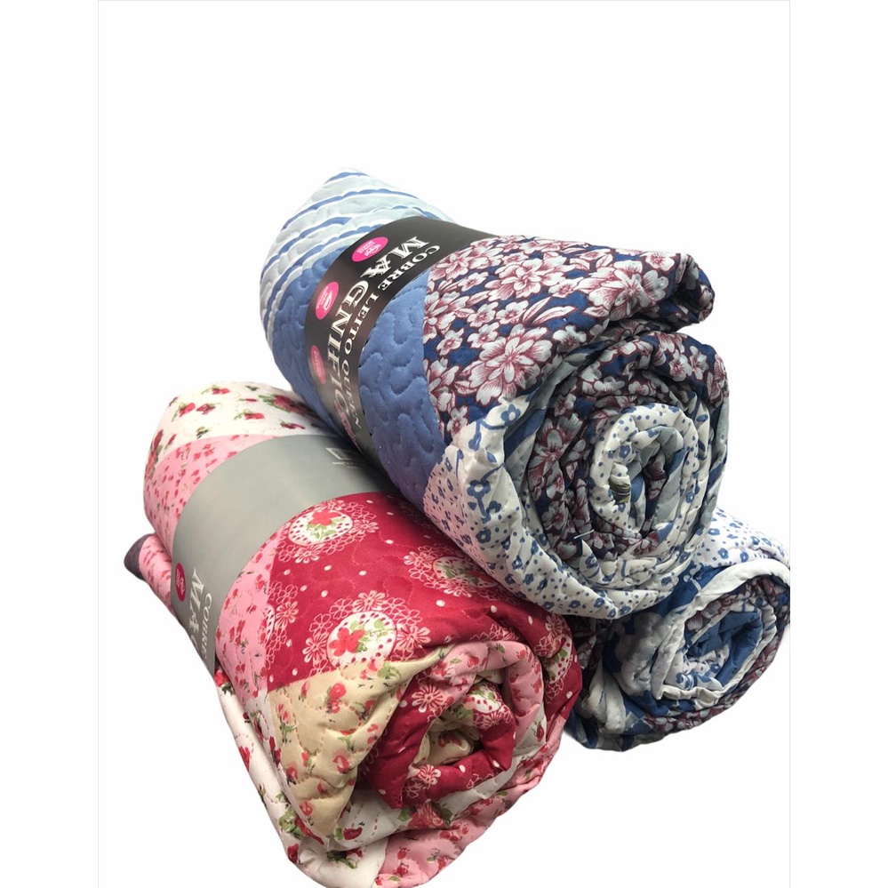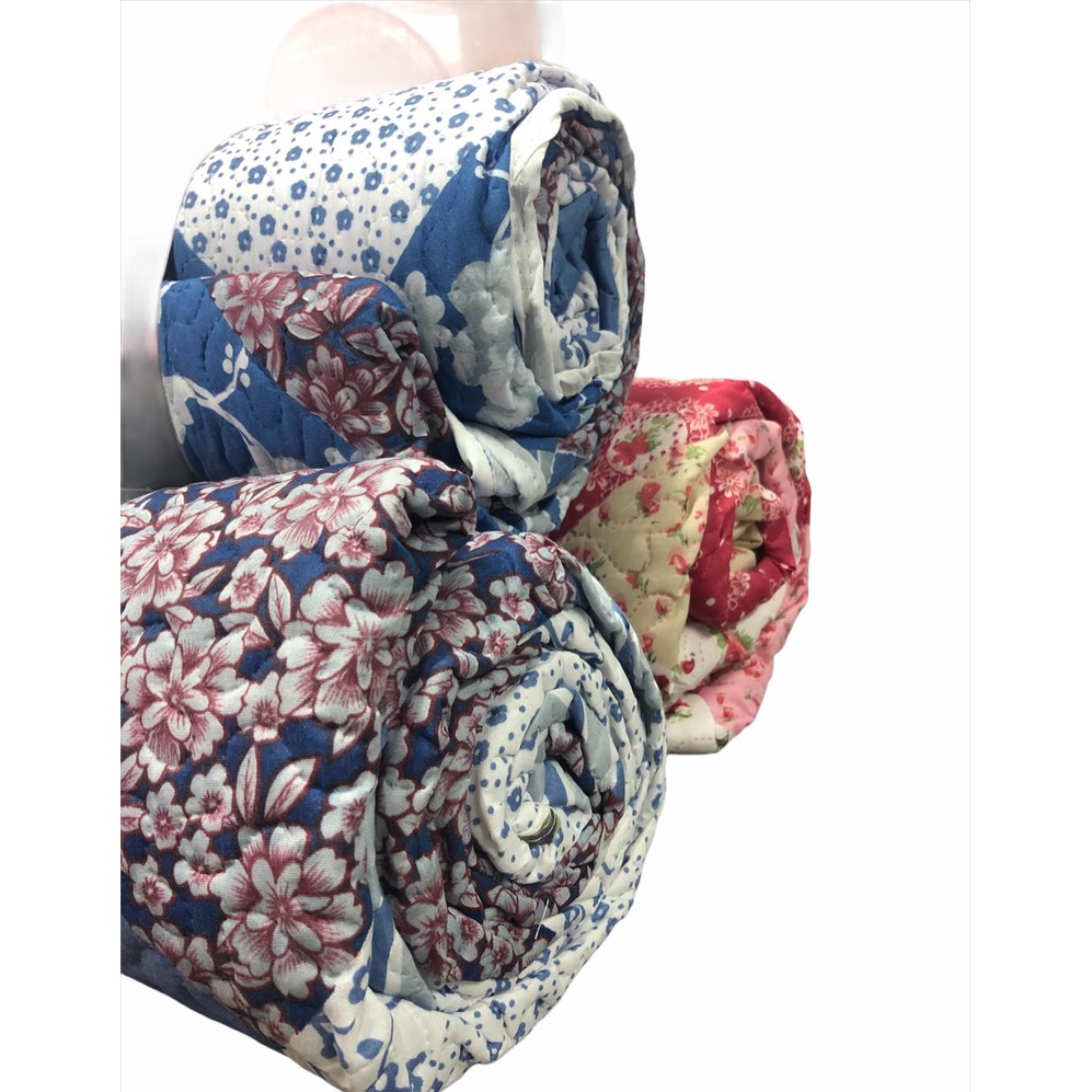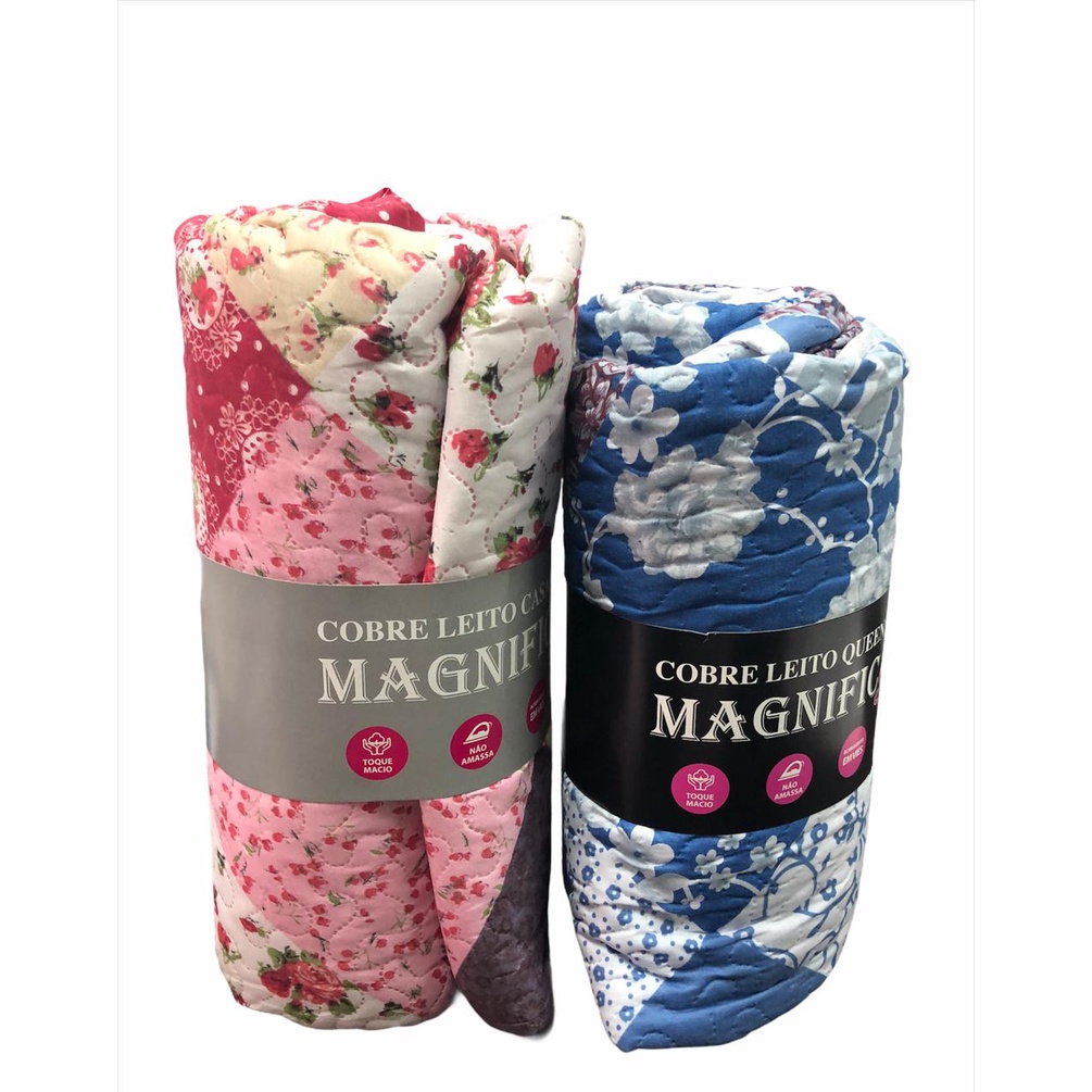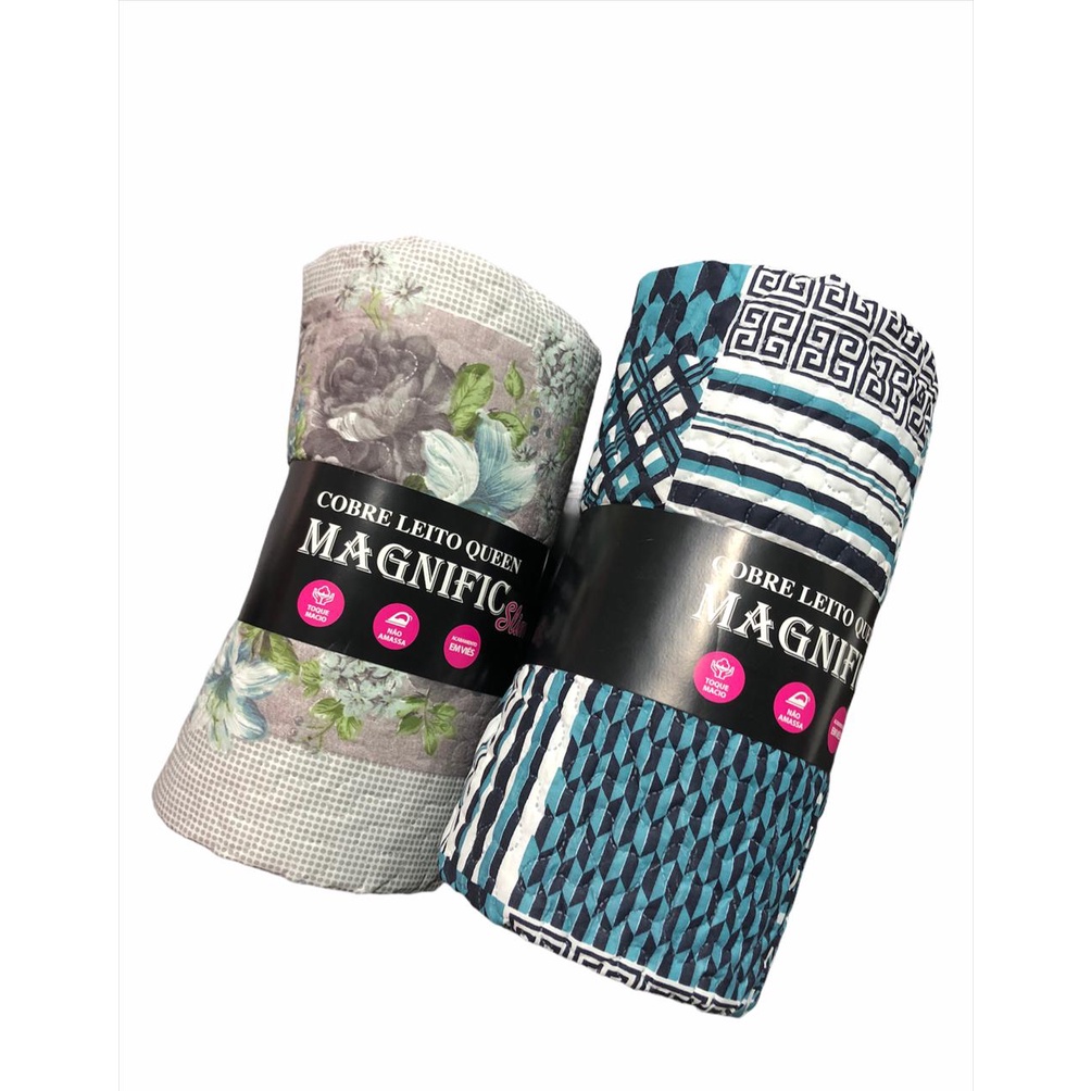 Colcha Cobre Leito Cama Queen Casal 100% Poliéster Com Viés Estampados Avulso