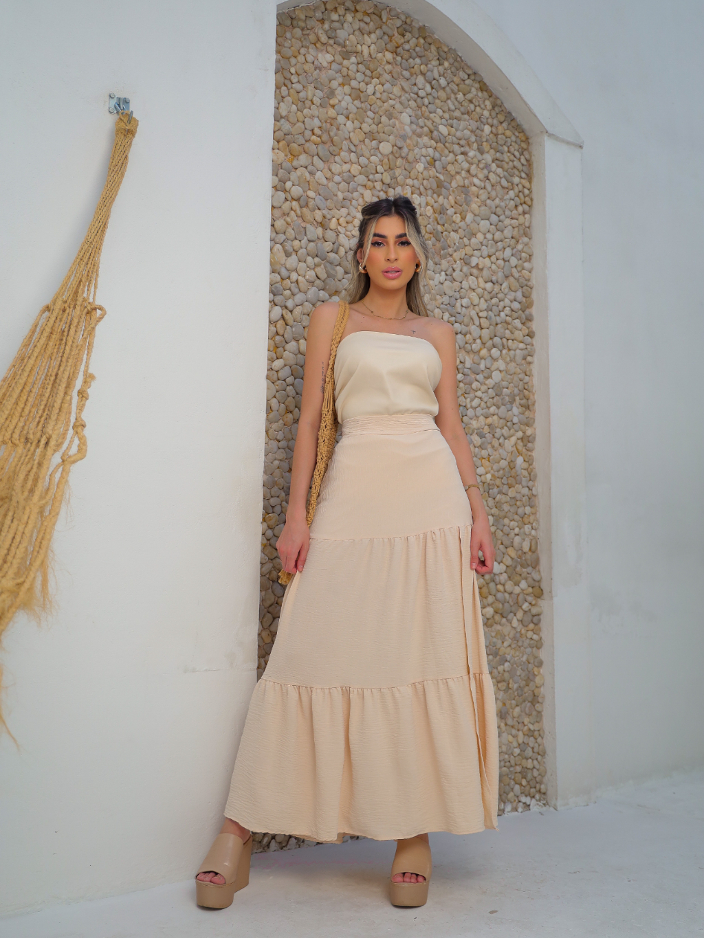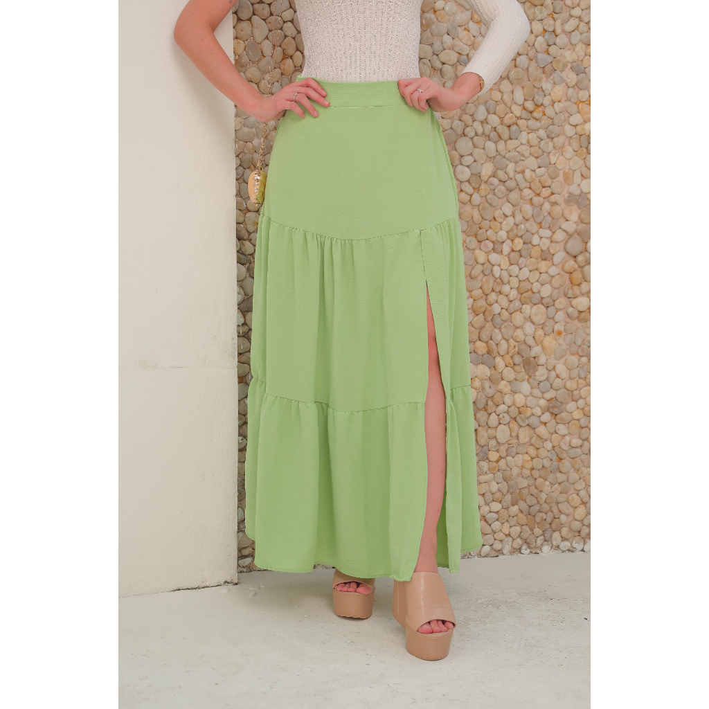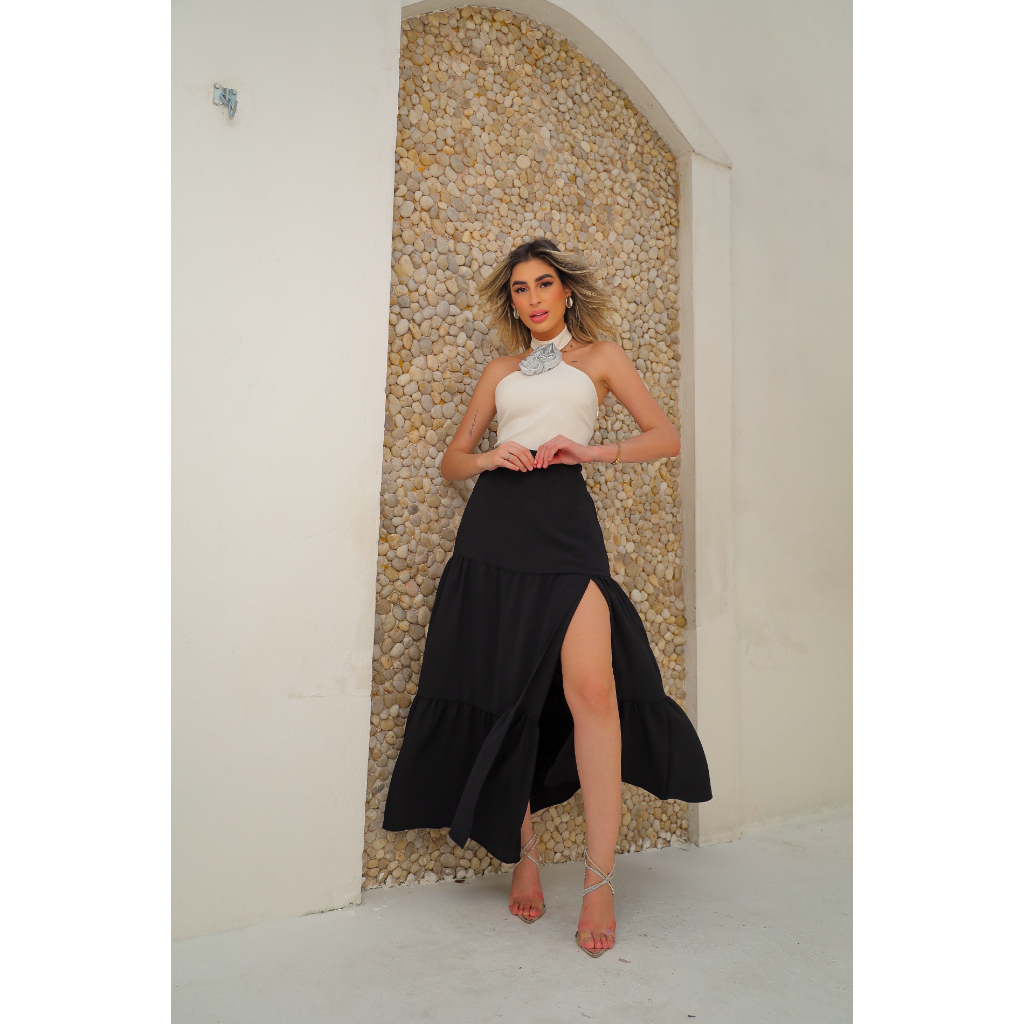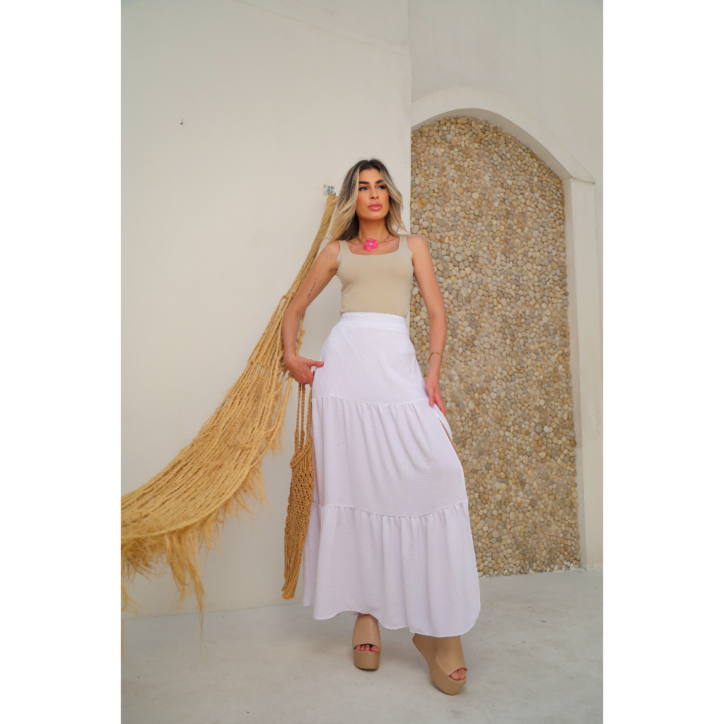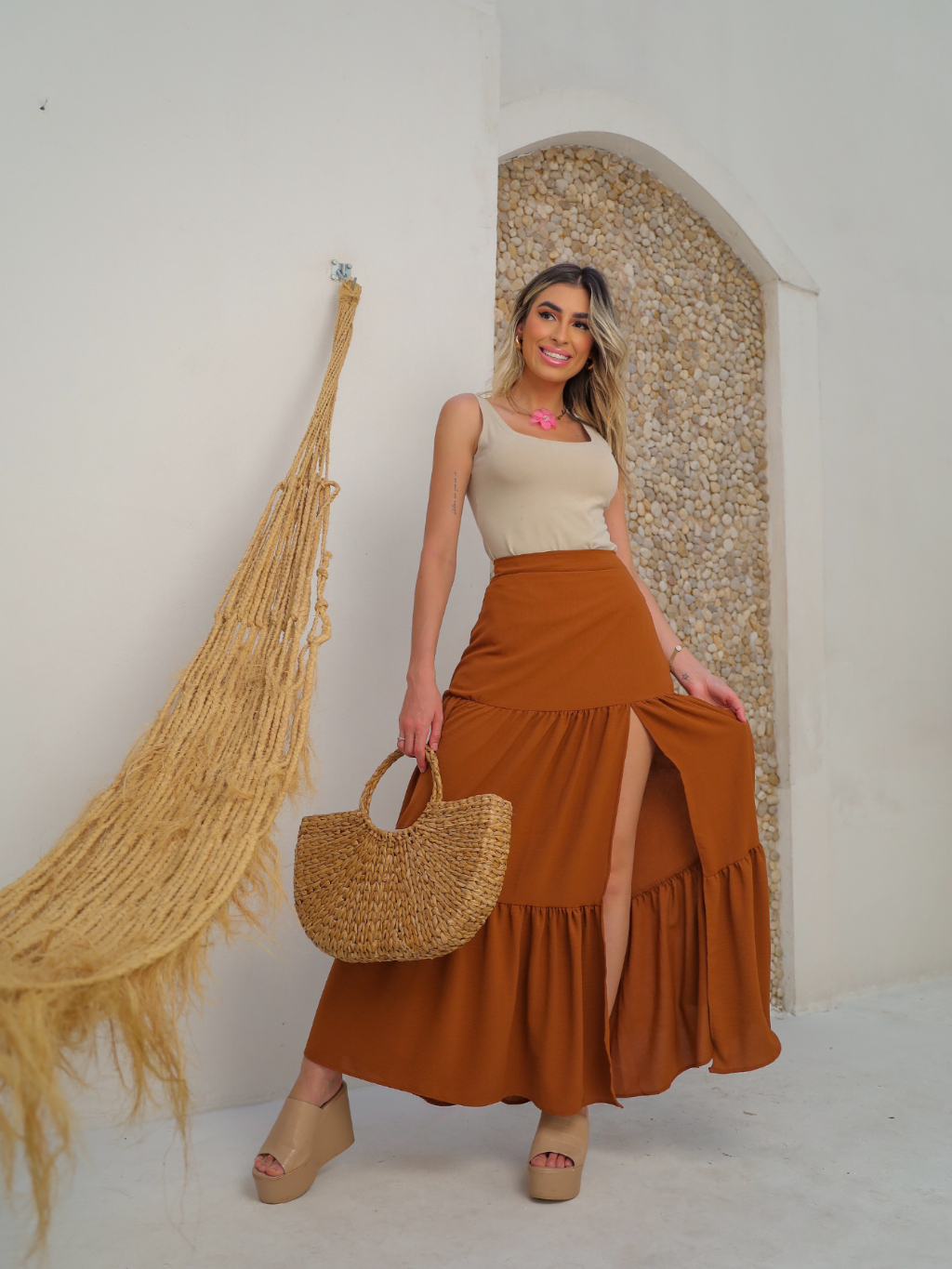 Saia Longa Feminina com Fenda (Tecido DUNA) Modinha Estilosa Elegante Moda 2025 Verão (P-M-G-GG)