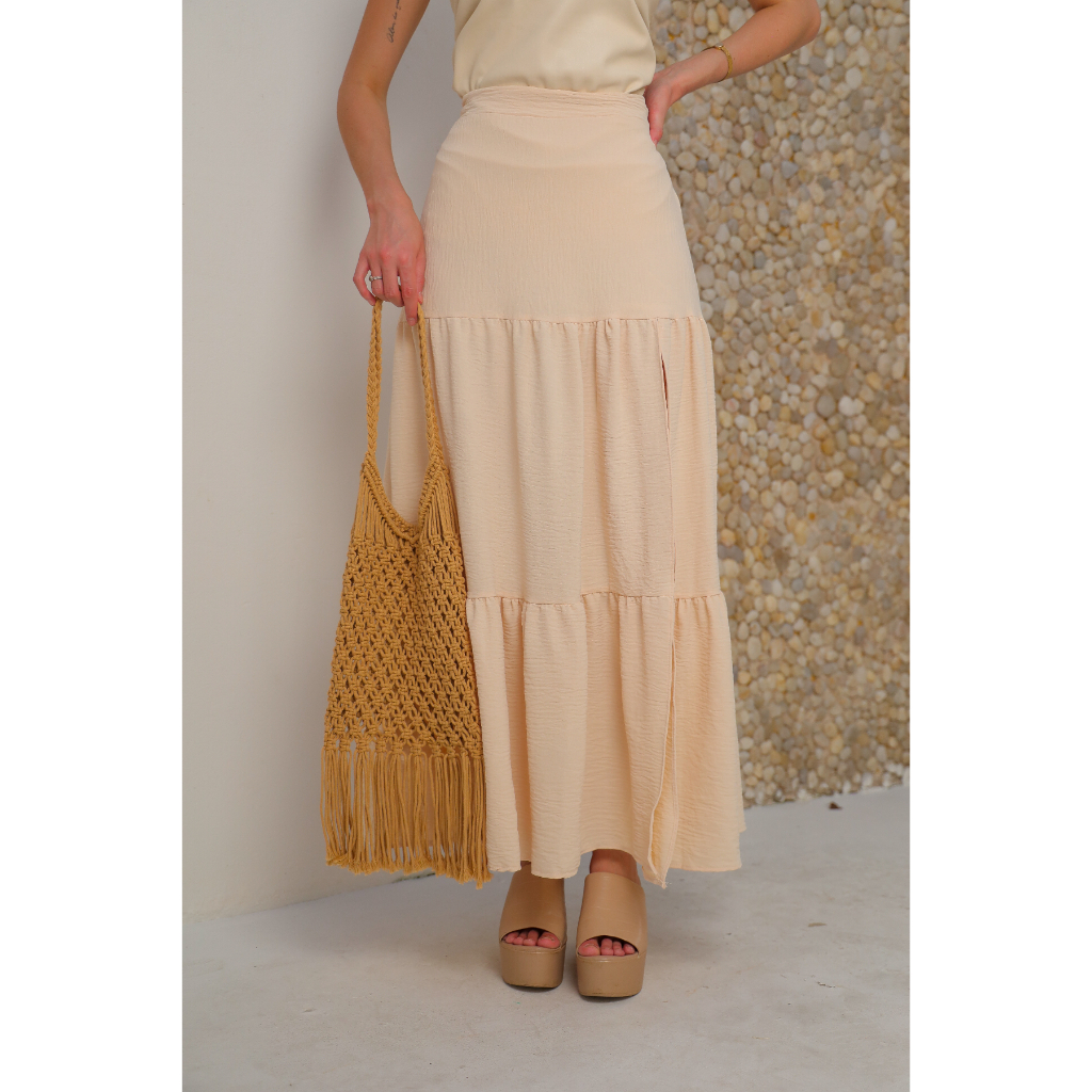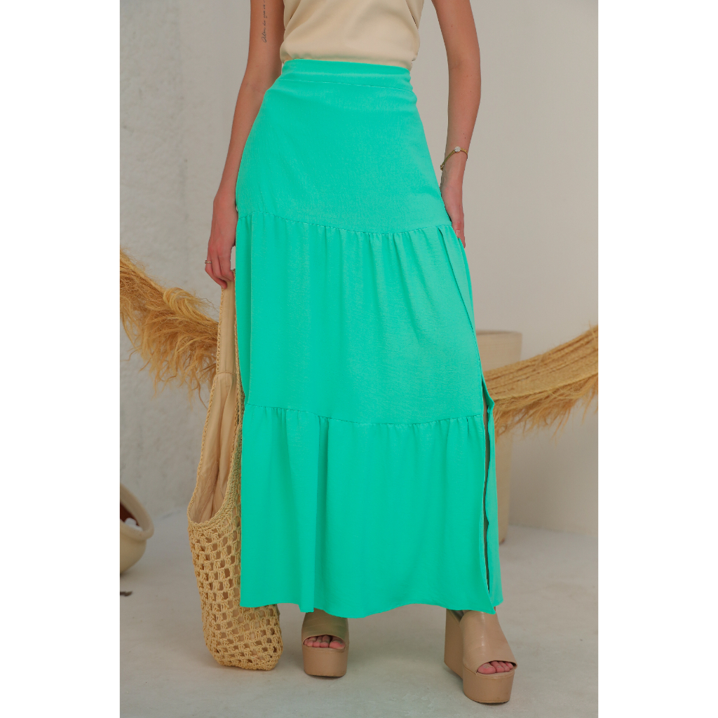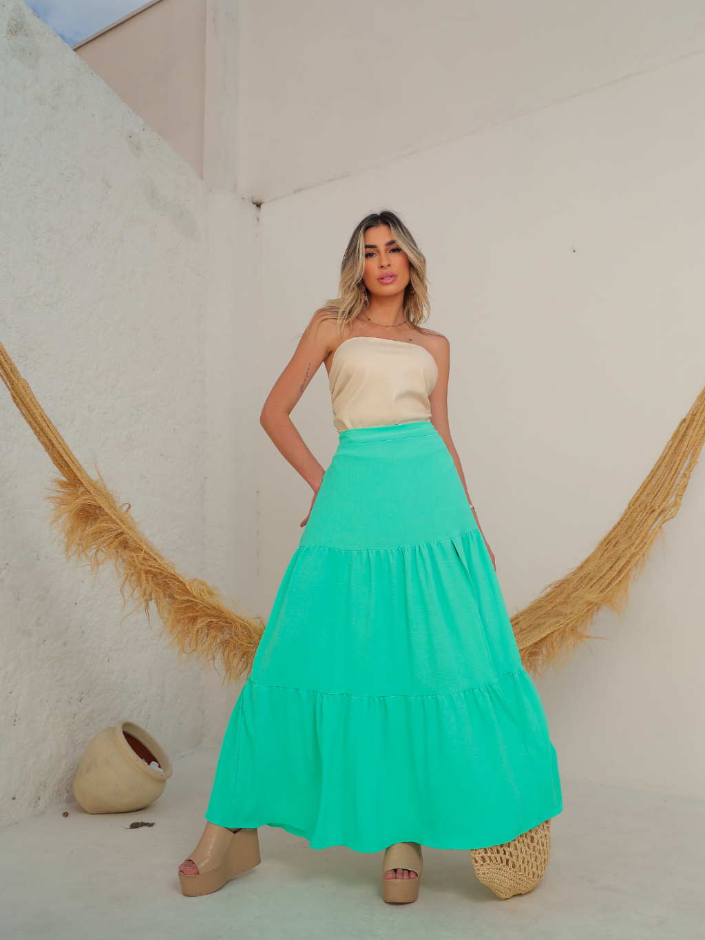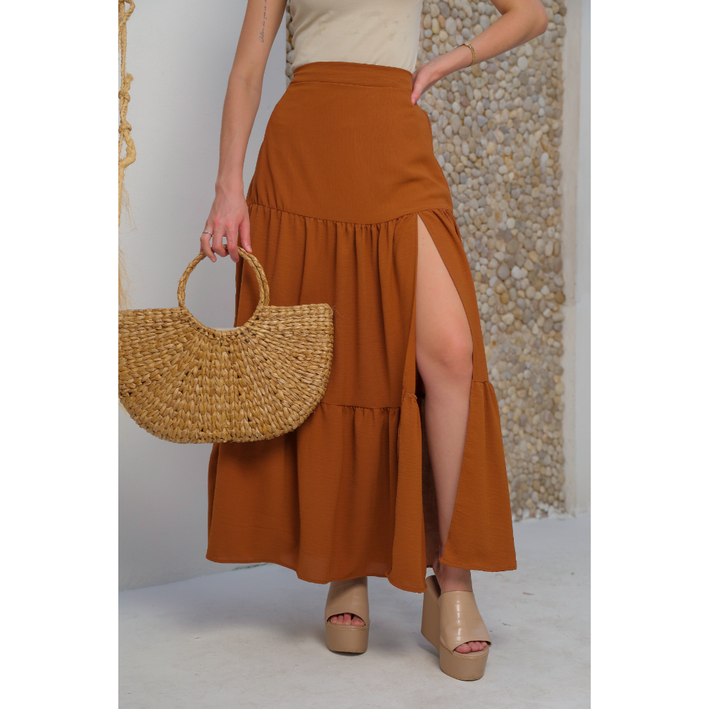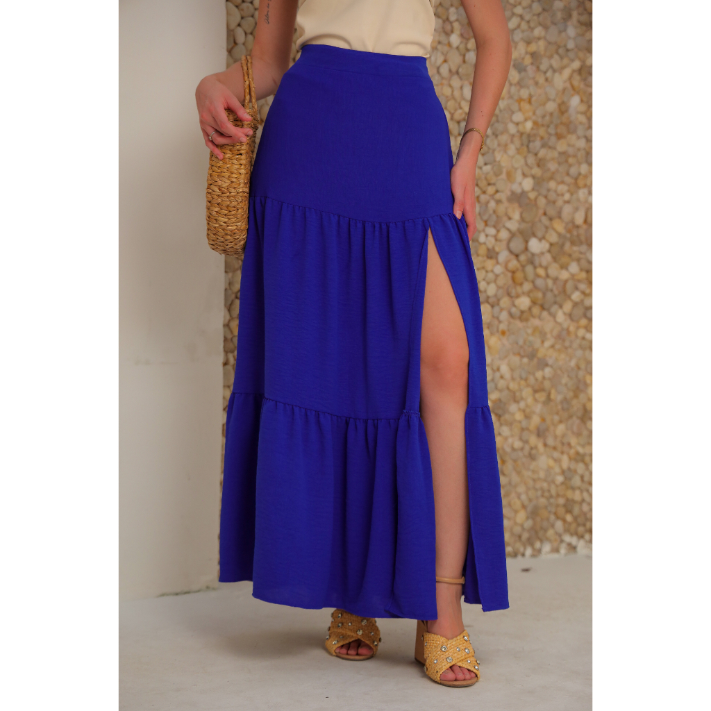 Saia Longa três maria feminina com fenda (Tecido Duna) forrado com elástico na cintura (P-M-G-GG)