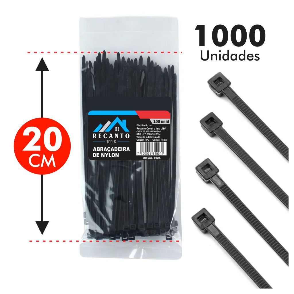 Kit 1000 Abraçadeira de Nylon 20cm Enforca Gato Braçadeira Cintas Plásticas - Preta | Branca