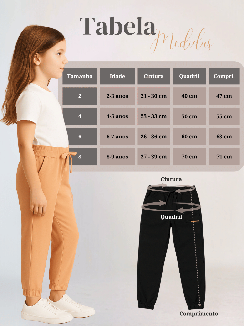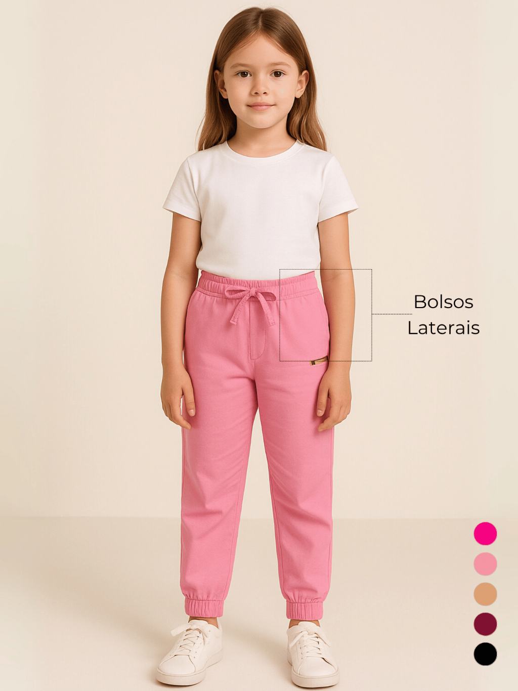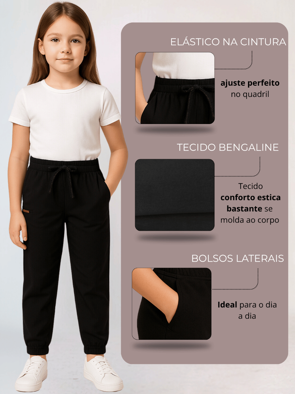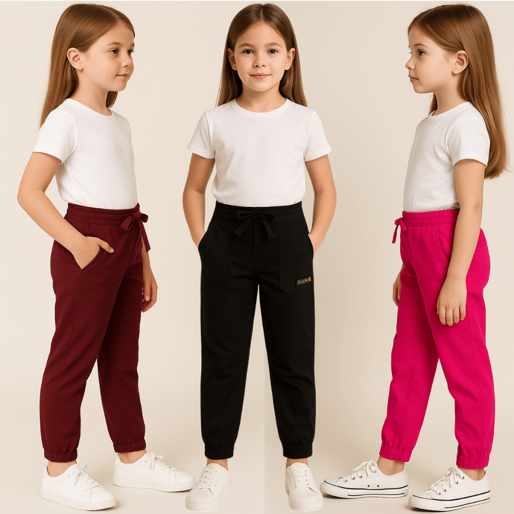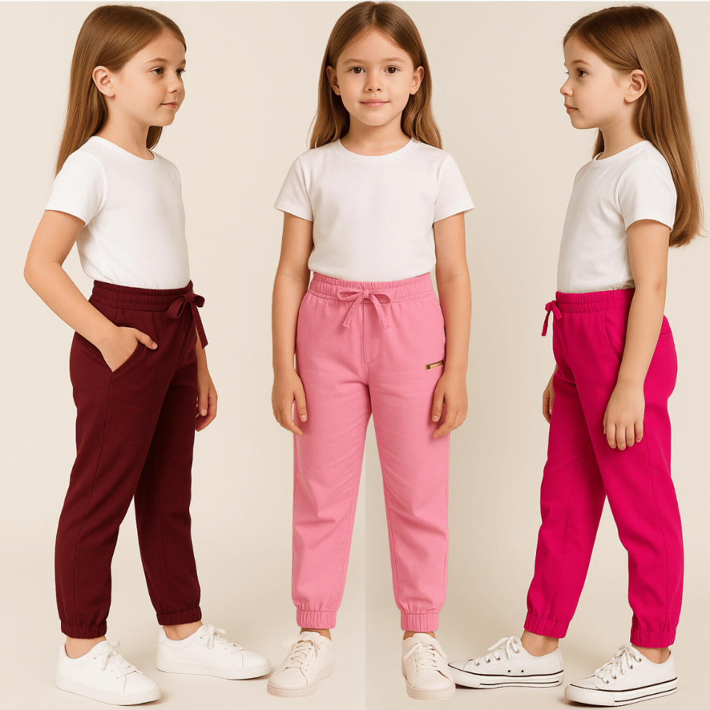 KIT 3 Calças Bengaline Infantil Criança Menina Feminina Frio Confortavel Bolsos Tecido Escola Estilo