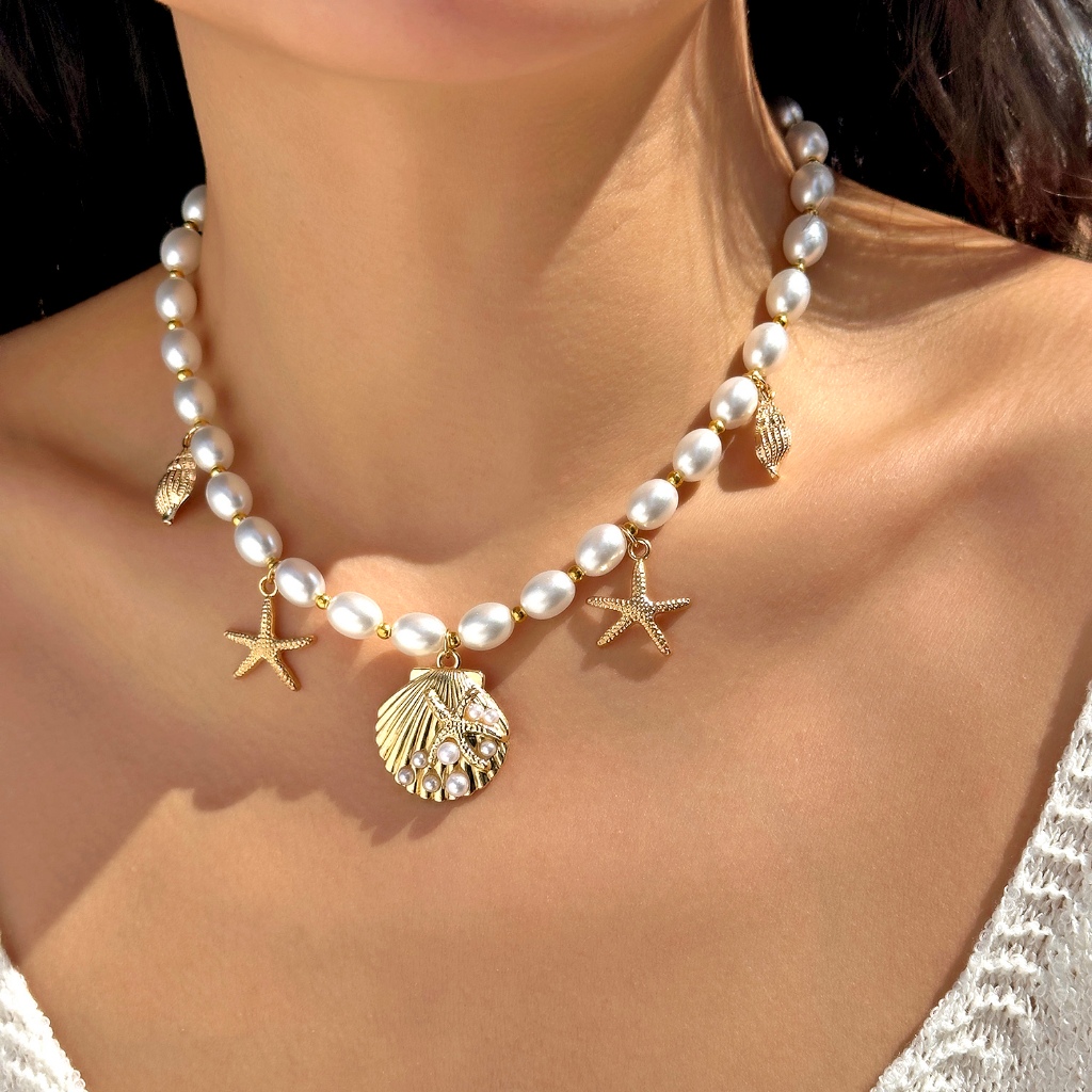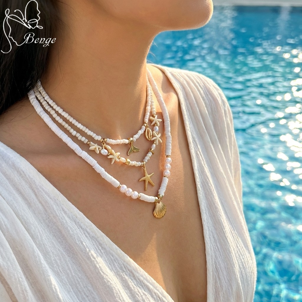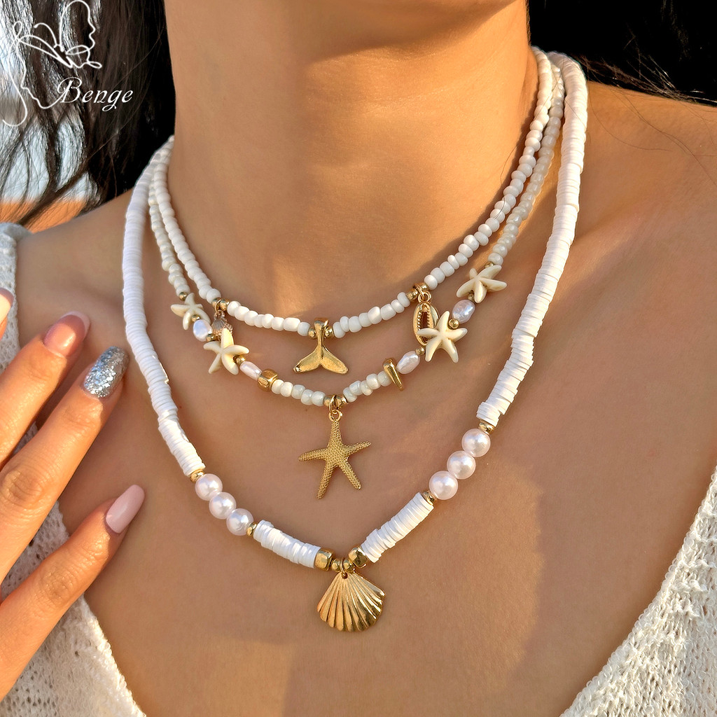 Benge Estrela Do Mar Concha Sereia Cauda Pérola Grânulo Colar 3 Pçs Y2K Em Camadas Conjunto Verão Praia Jóias Boho Festa