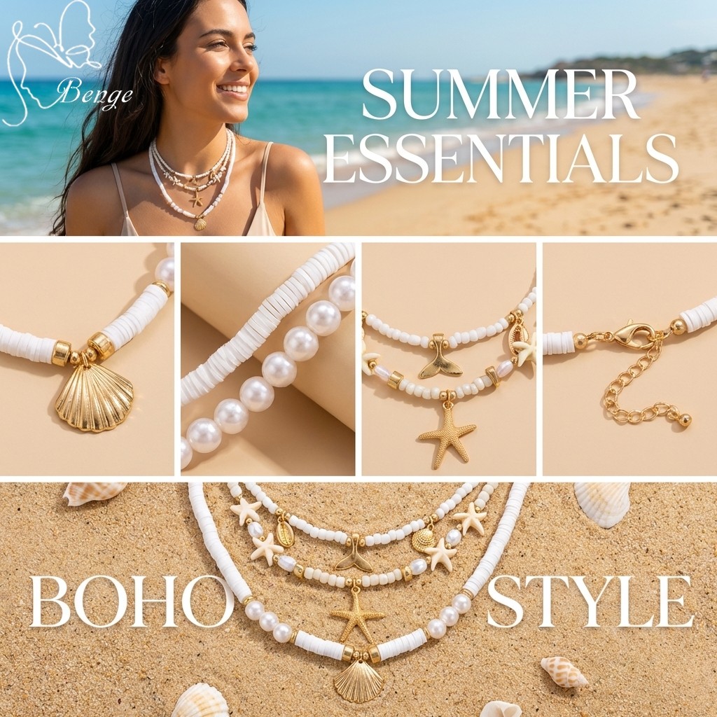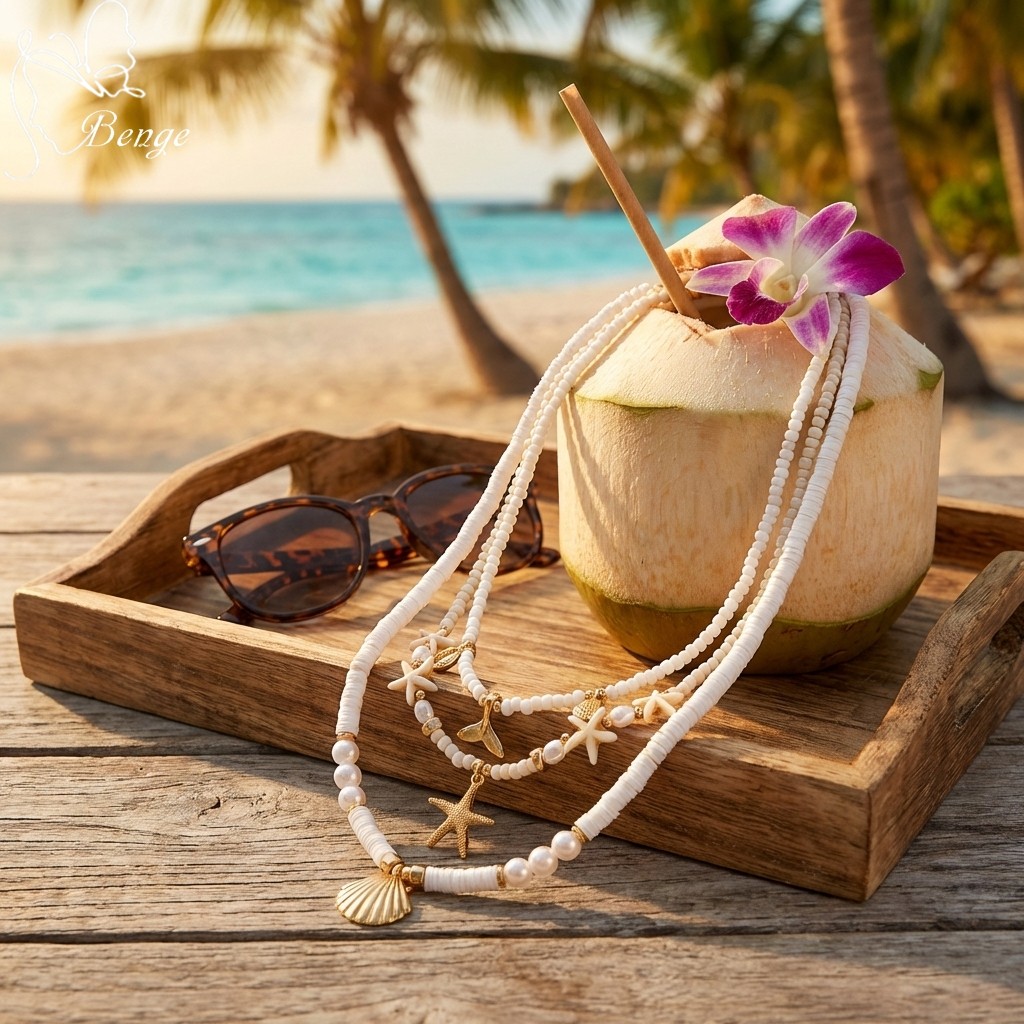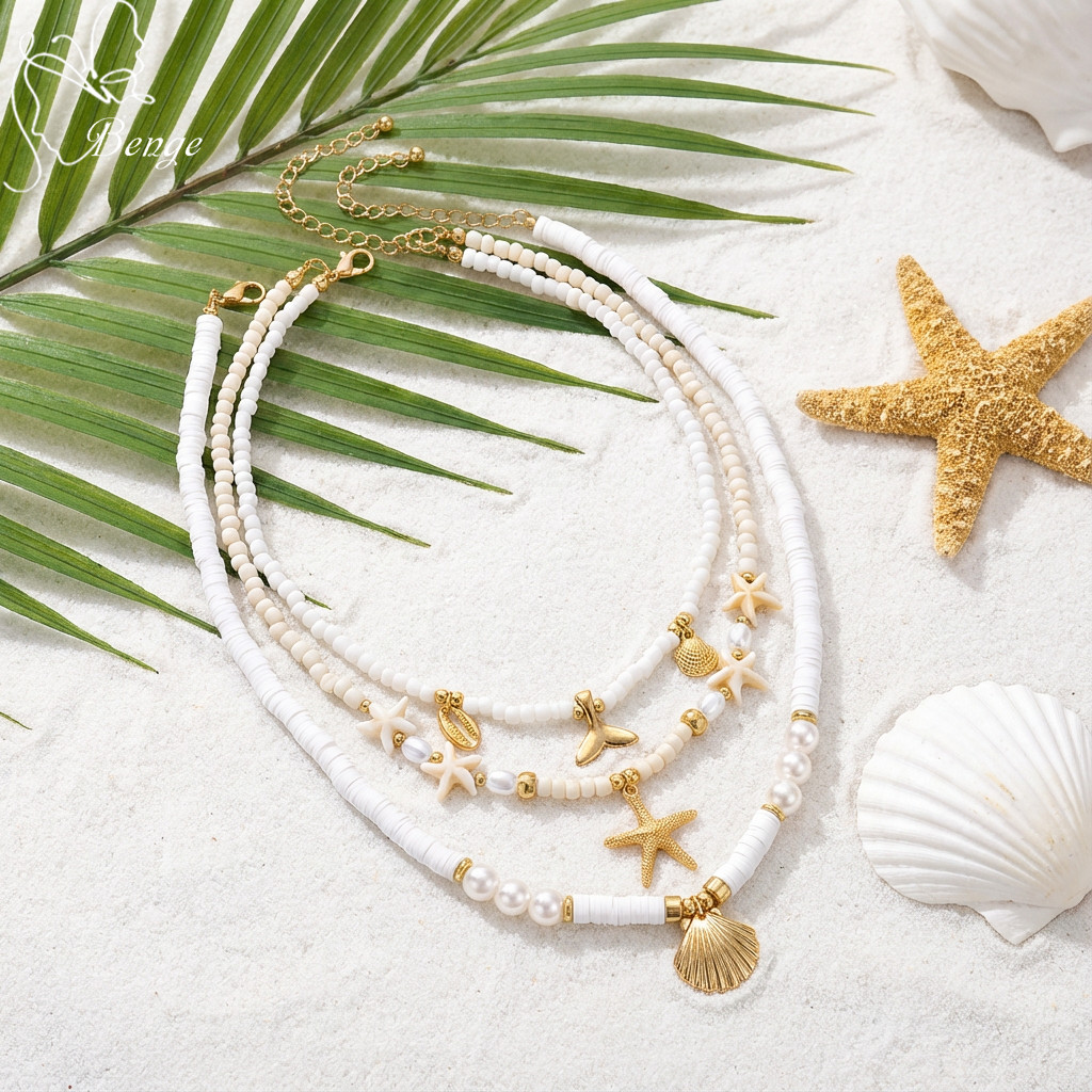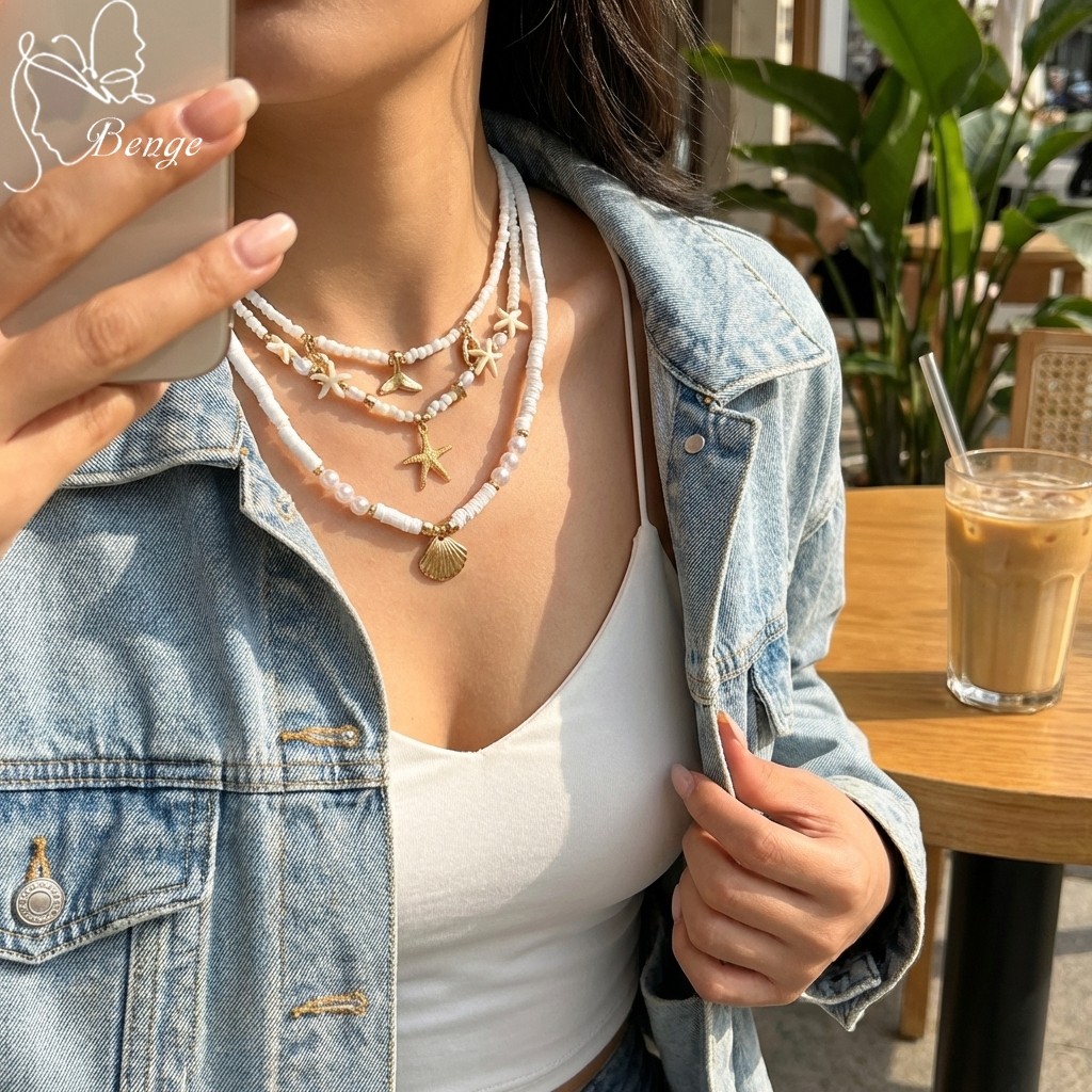 Benge Estrela Do Mar Concha Sereia Cauda Pérola Grânulo Colar 3 Pçs Y2K Em Camadas Conjunto Verão Praia Jóias Boho Festa