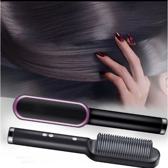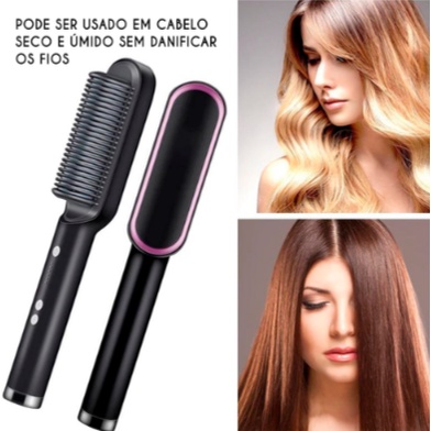 Escova Alisadora Secadora Eletrica 3 Em 1 – Alisa Seca E Hidrata Seus Cabelos Com Luzes De Íons - Hair – Bivolt