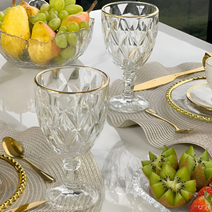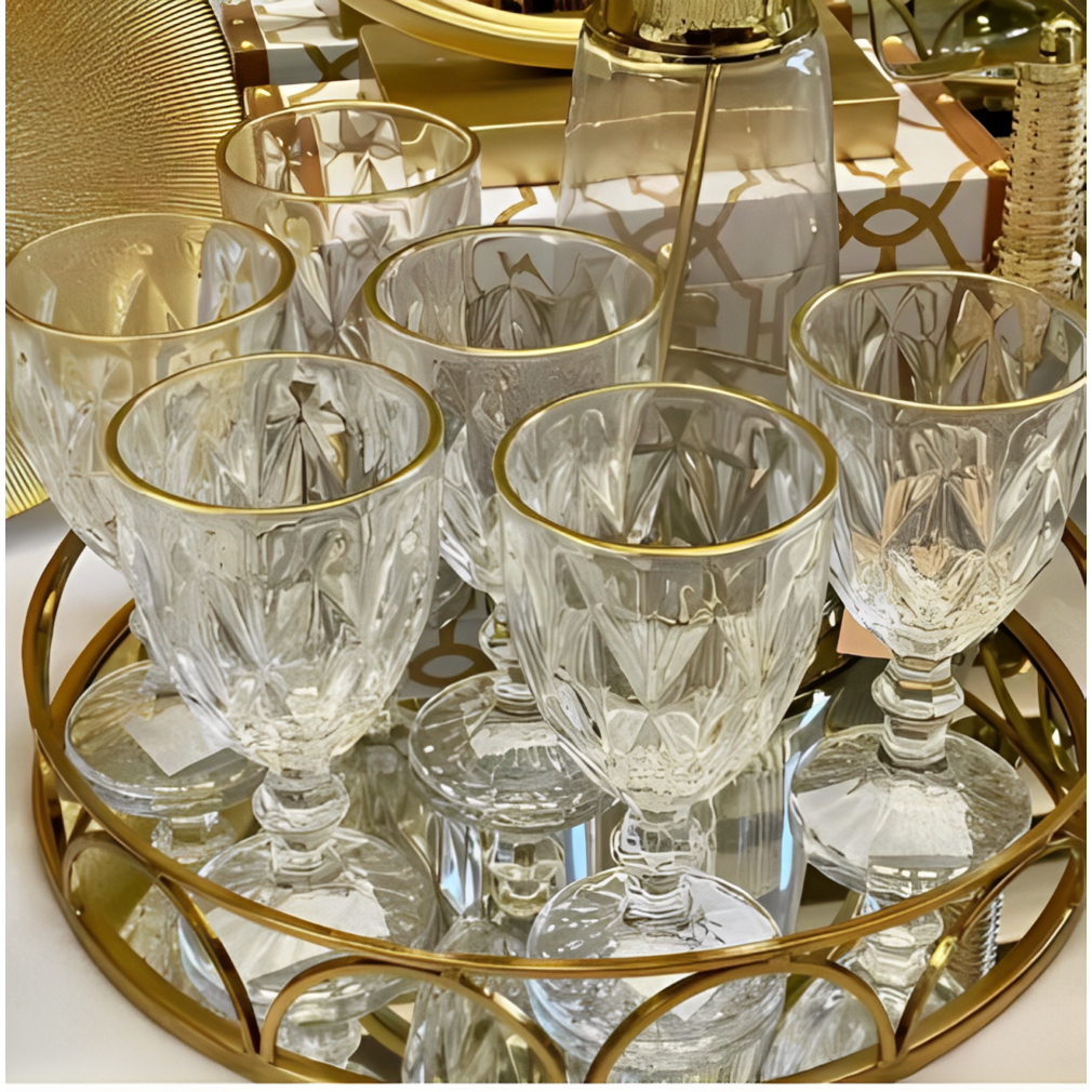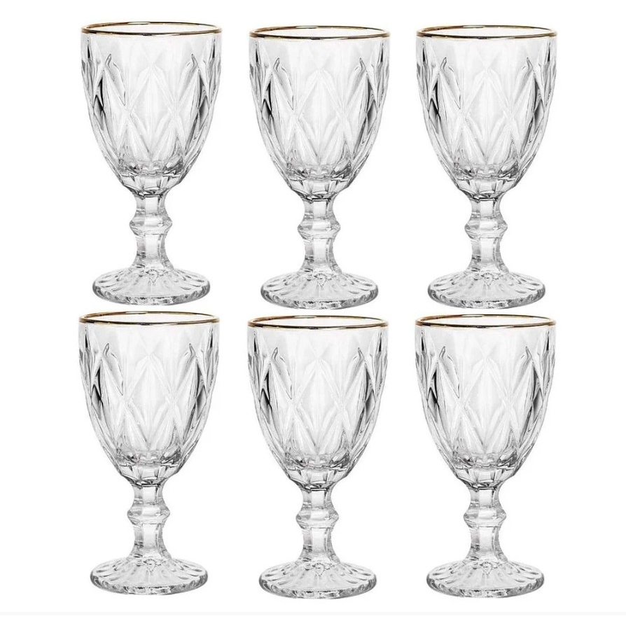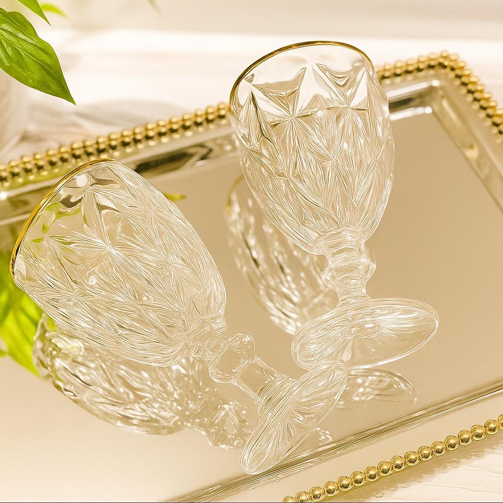 Jogo 6 Taças Diamond Transparente com Borda Dourada 330ML– Gamma