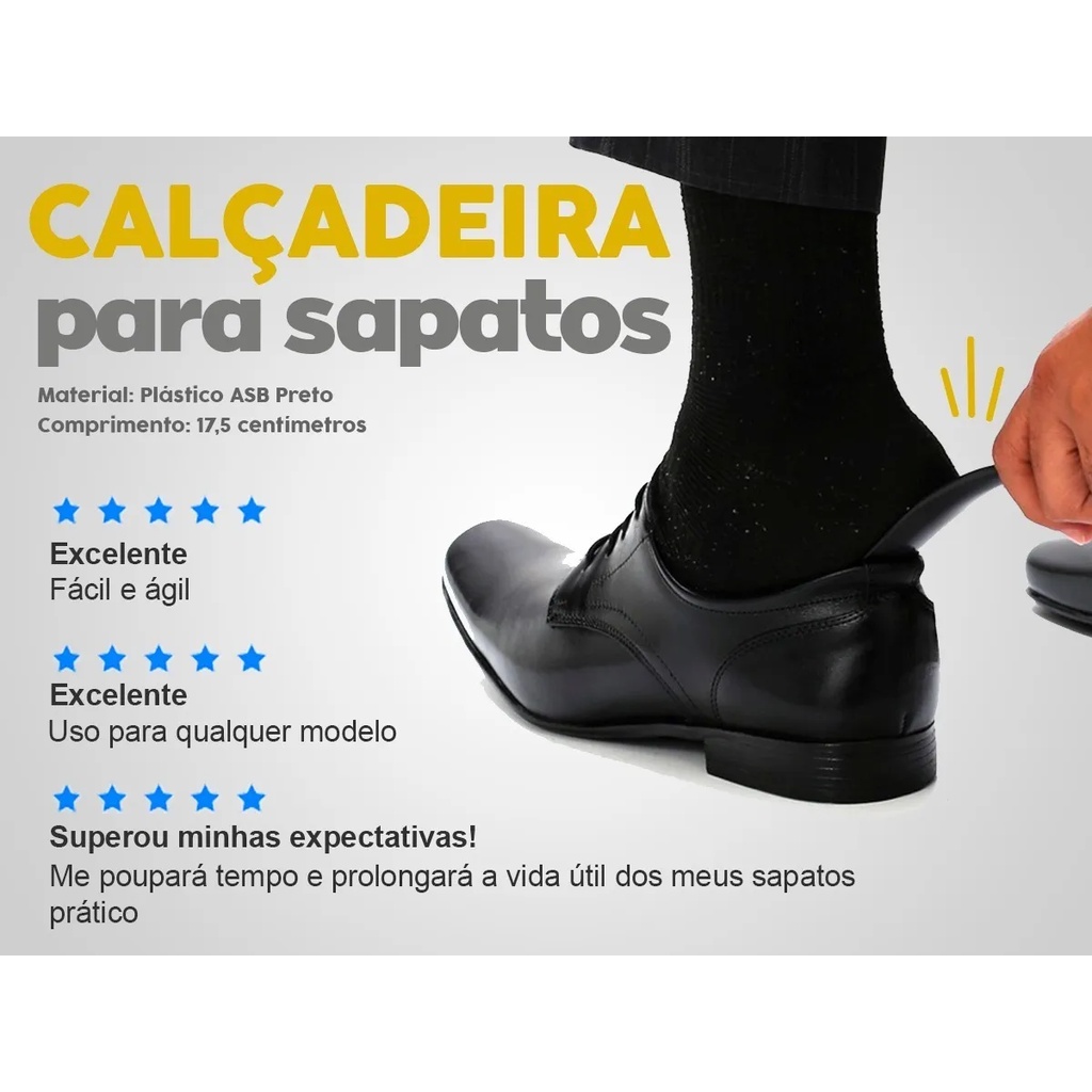 Kit De 2 Calçadeiras Pretas Clássica Calçar Calçado Sapato Flexível Resistente Envio no mesmo dia